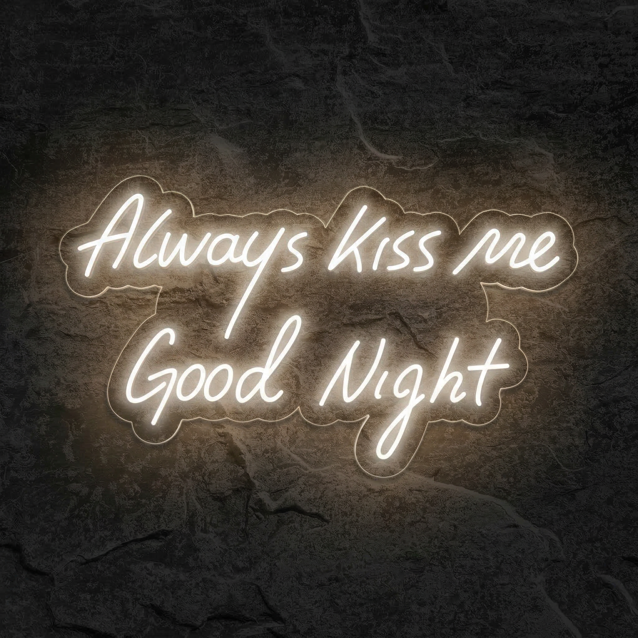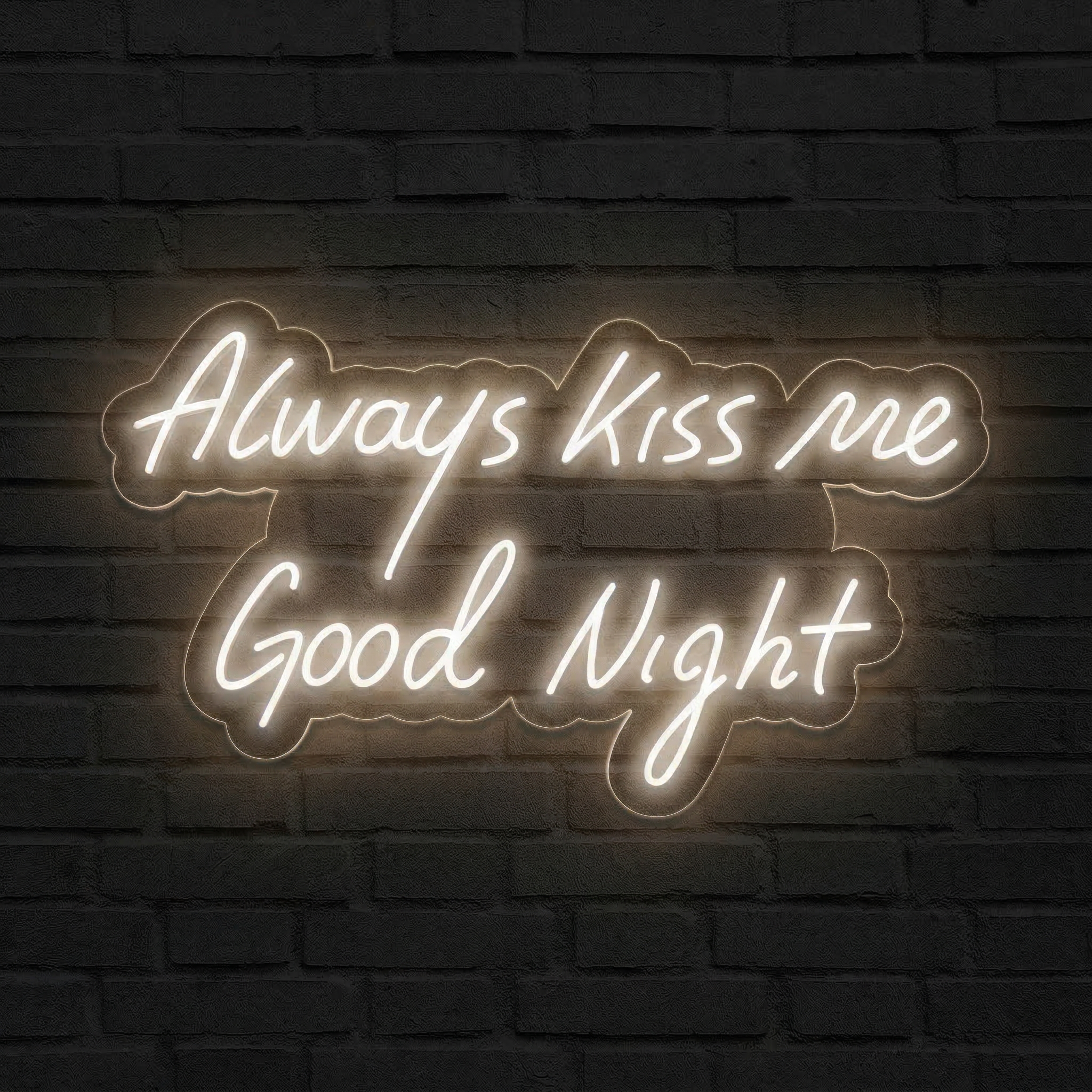 Illuminez votre chambre avec ce néon LED romantique « Always Kiss Me Good Night » — une déclaration d'amour lumineuse à accrocher au-dessus de votre lit.