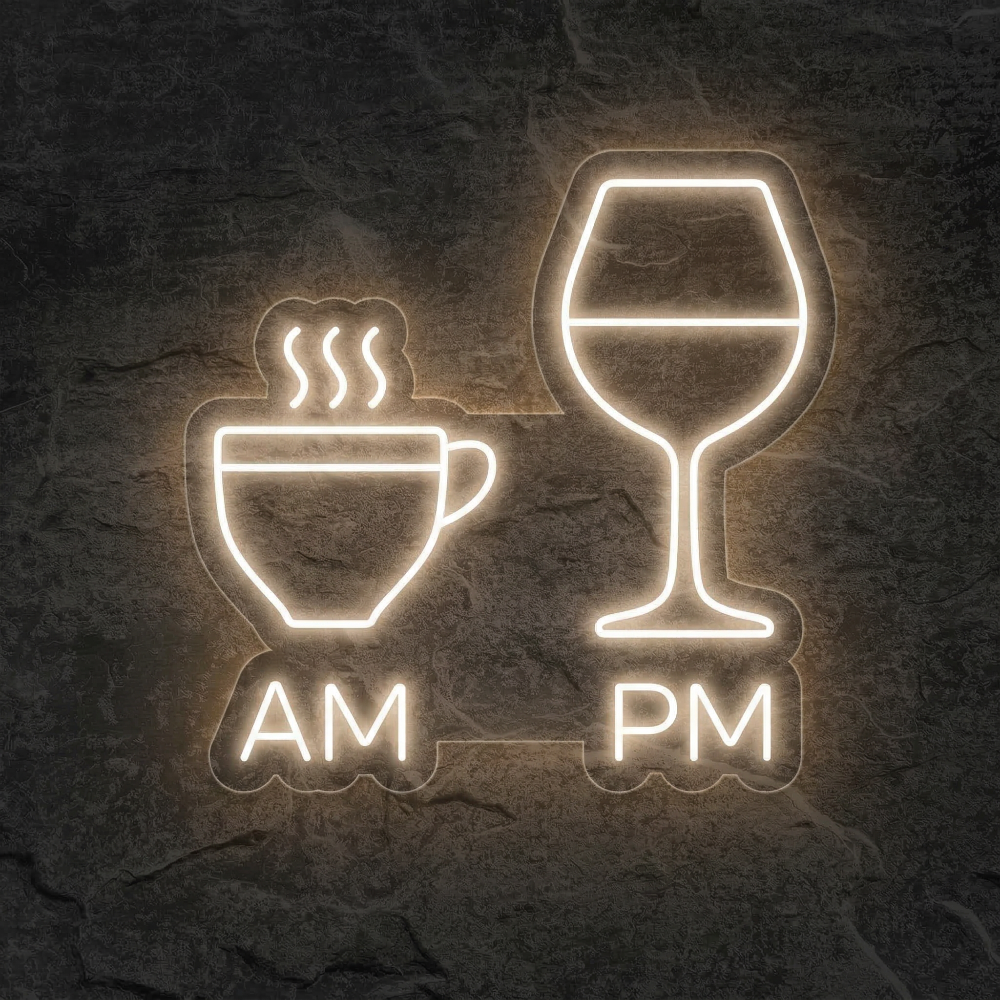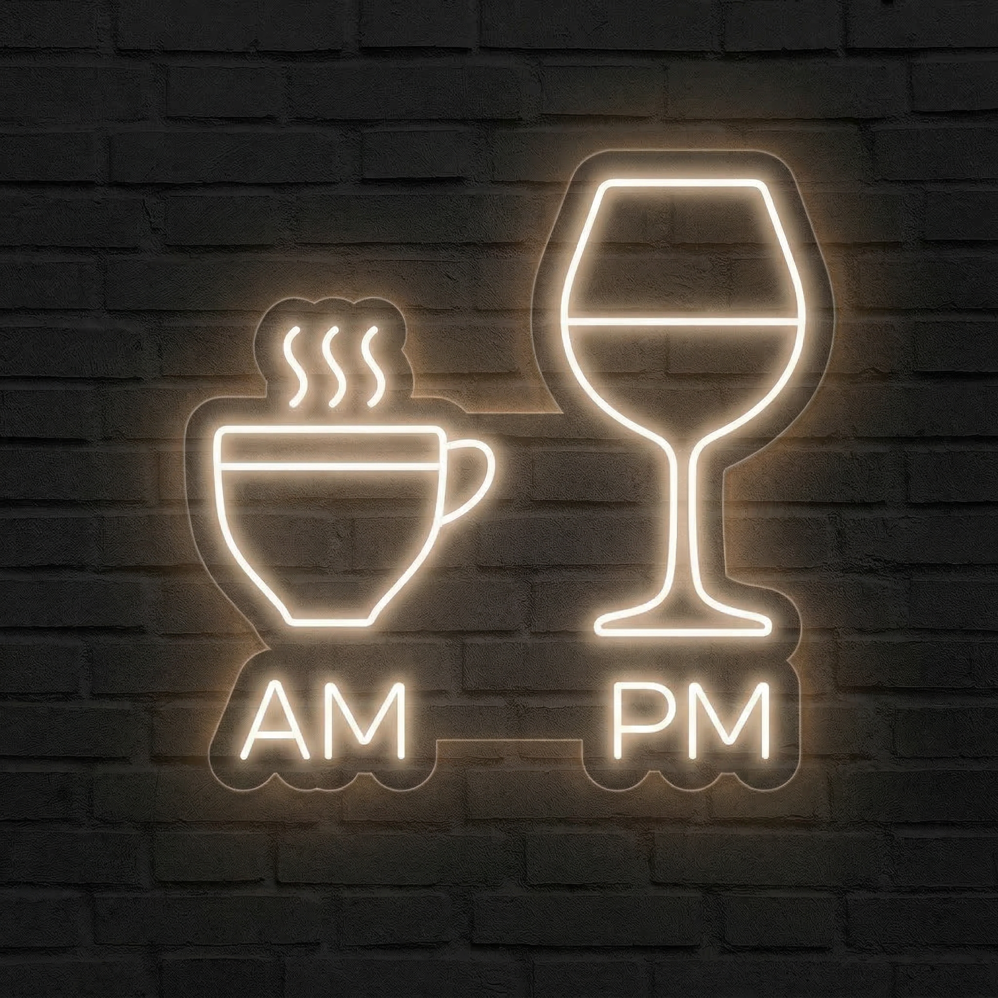 Du premier café du matin au dernier verre de vin en soirée, certains rituels méritent d'être célébrés. Notre Néon AM PM Bar Café Vin est conçu pour ceux qui aiment transformer leur intérieur en un lieu à l'atmosphère unique — entre chaleur d'un café de quartier et convivialité d'un bar tendance. Accroché dans votre cuisine, votre salon, votre cave à vins ou votre espace bar, il capte immédiatement le regard et donne le ton dès qu'il s'allume.