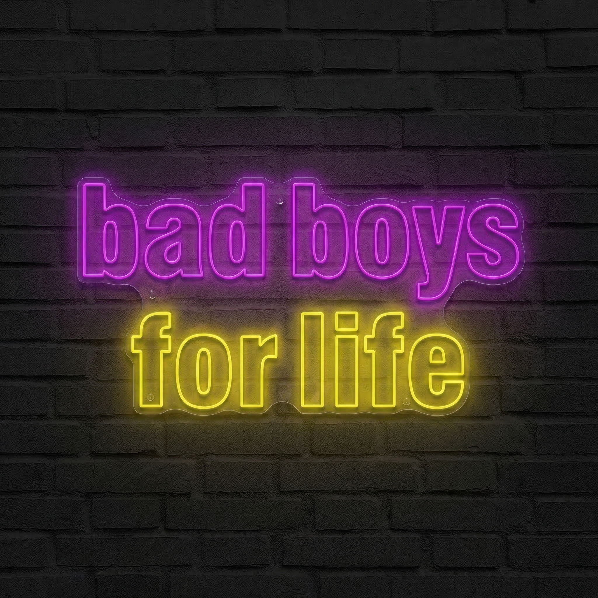 Certaines phrases ne se disent pas — elles s'affichent. « Bad Boys For Life » est bien plus qu'un slogan : c'est un état d'esprit, une philosophie, une déclaration que l'on porte fièrement. Notre Néon Bad Boys For Life est conçu pour ceux qui refusent les intérieurs trop sages et veulent insuffler une vraie personnalité à leur espace. Accroché dans une chambre, un salon, un bureau ou un bar, il capte le regard dès l'entrée et impose le ton.