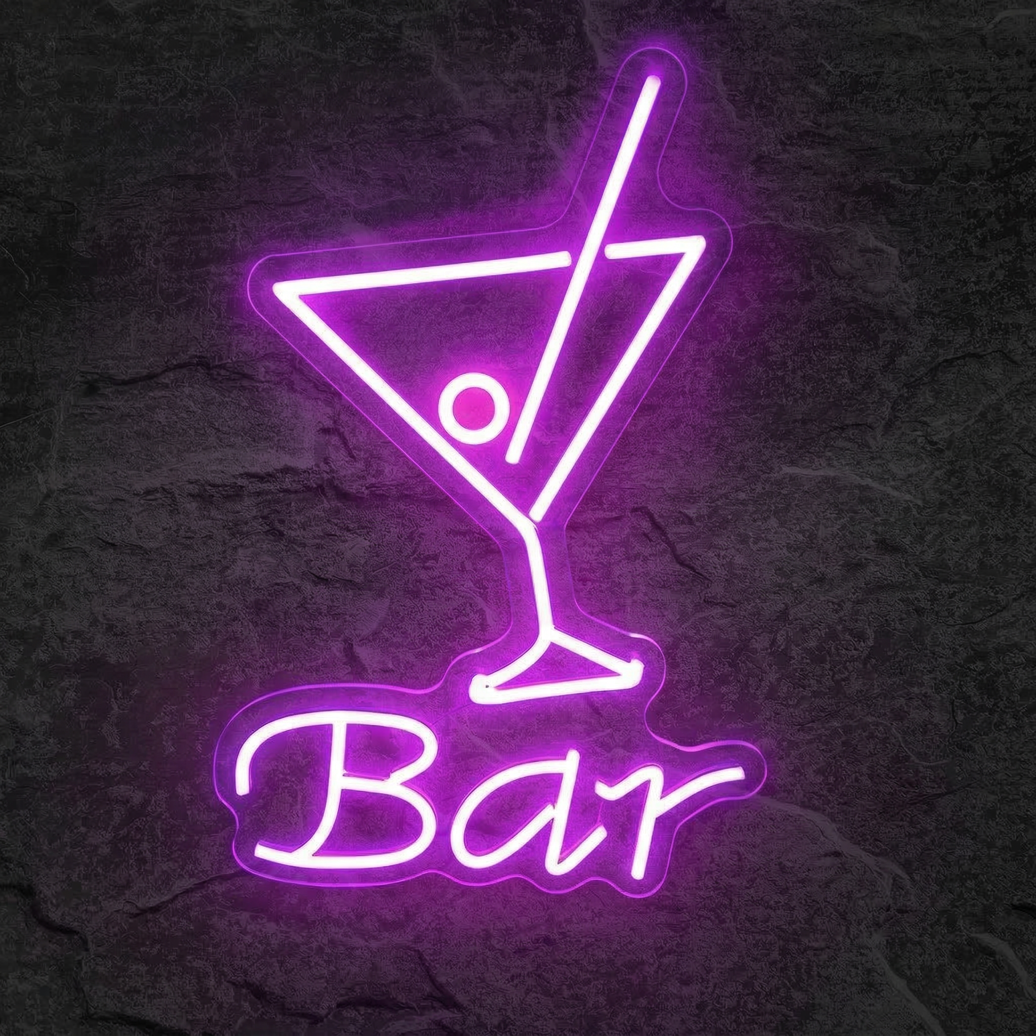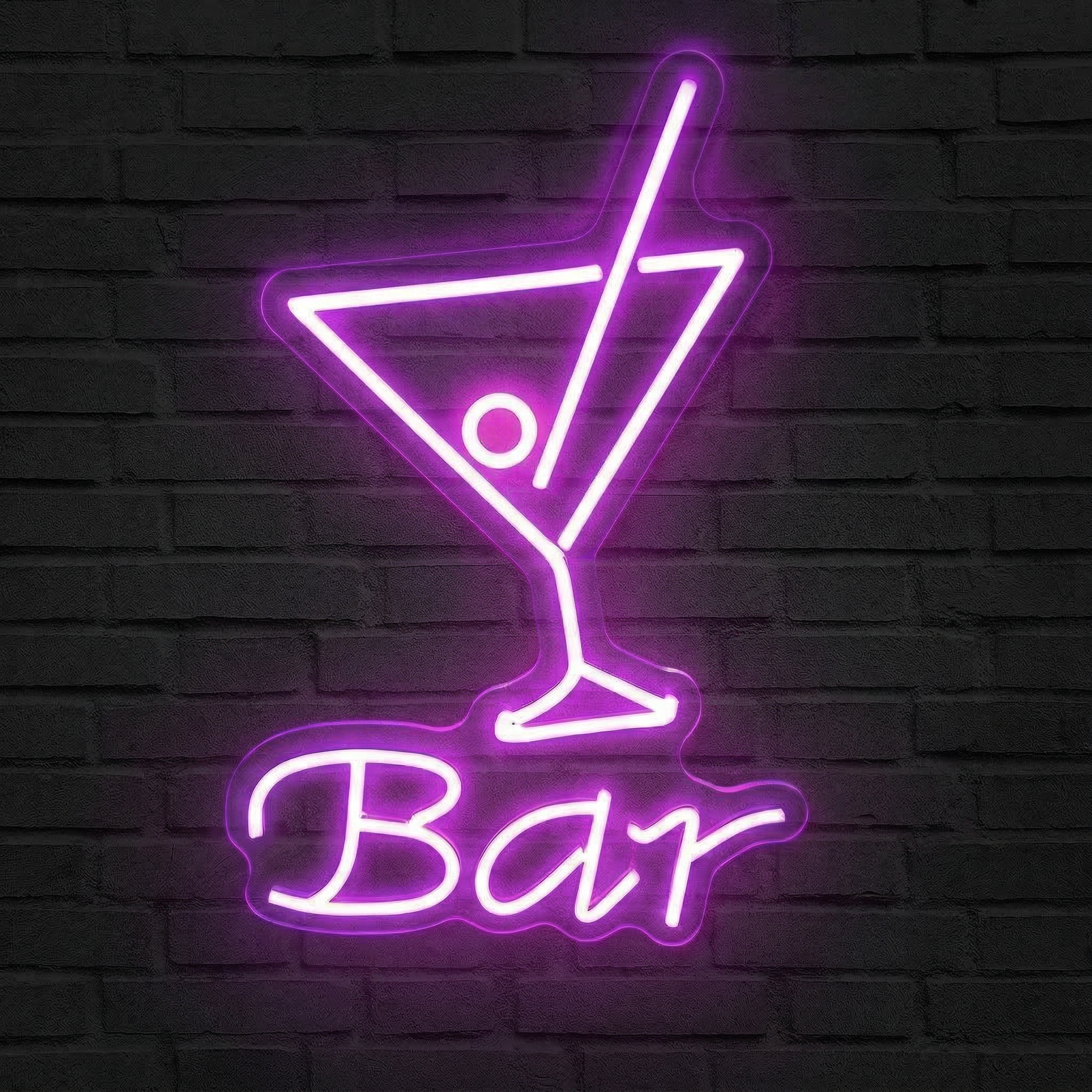 Sublimez votre bar ou votre espace avec ce néon LED violet intense — une enseigne lumineuse qui pose l'ambiance cocktail en un coup d'œil.