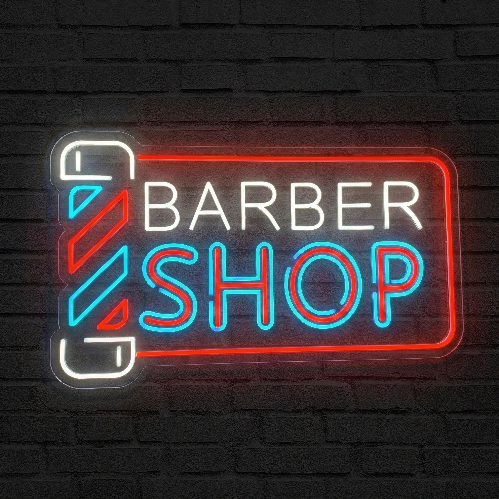 Une enseigne lumineuse, c'est bien plus qu'un simple panneau — c'est la première impression que vous donnez à chaque passant. Notre Néon Barber Shop est conçu pour les coiffeurs et barbiers qui refusent de passer inaperçus. Accrochée en vitrine ou à l'intérieur de votre salon, cette signature lumineuse transforme votre devanture en véritable invitation, de jour comme de nuit. L'effet est immédiat : les regards se tournent, les pas s'arrêtent, les clients entrent.