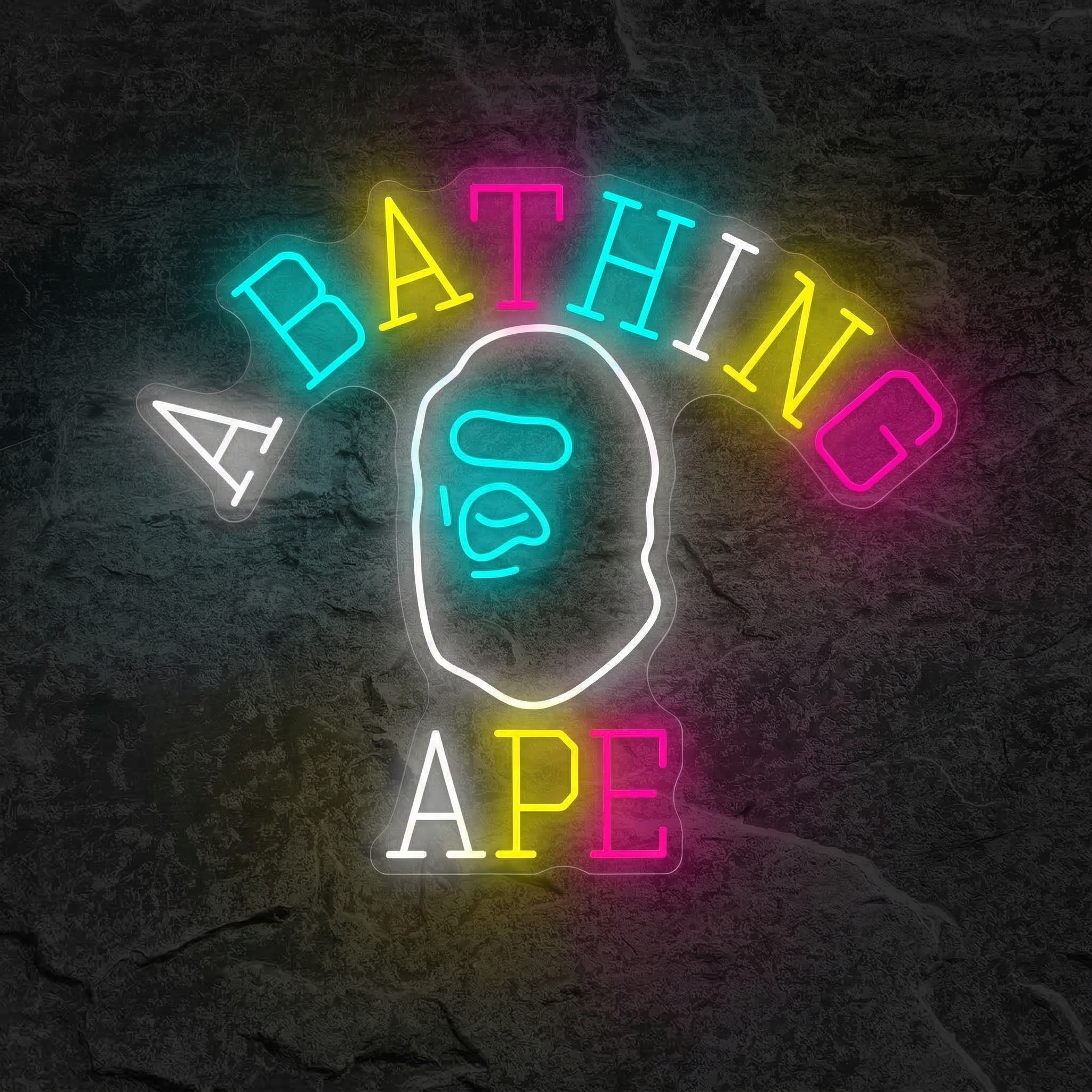Oui, notre néon reproduit fidèlement les contours emblématiques du logo Bathing Ape grâce à une découpe laser de précision sur fond acrylique transparent. Le rendu lumineux est net, uniforme et reconnaissable au premier coup d'œil.