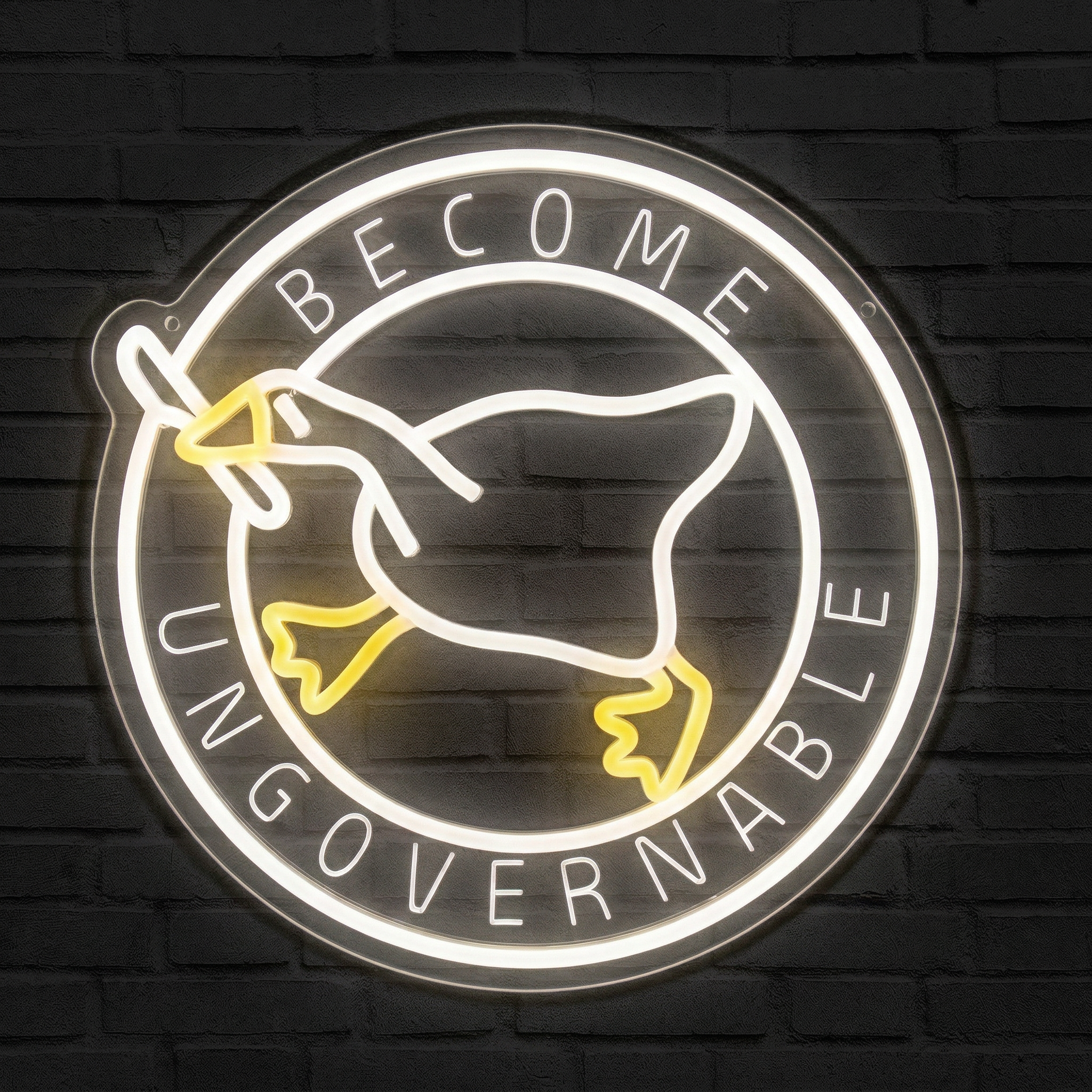 Certains mèmes marquent une génération. « Become Ungovernable » en fait partie — et notre Néon Become Ungovernable Oie est là pour l'immortaliser sur vos murs avec style, éclat et une bonne dose d'anarchie assumée. Si vous avez déjà ri aux éclats devant cette oie chaotique qui sème la pagaille dans les jeux vidéo, vous savez exactement pourquoi ce néon doit trôner dans votre espace.