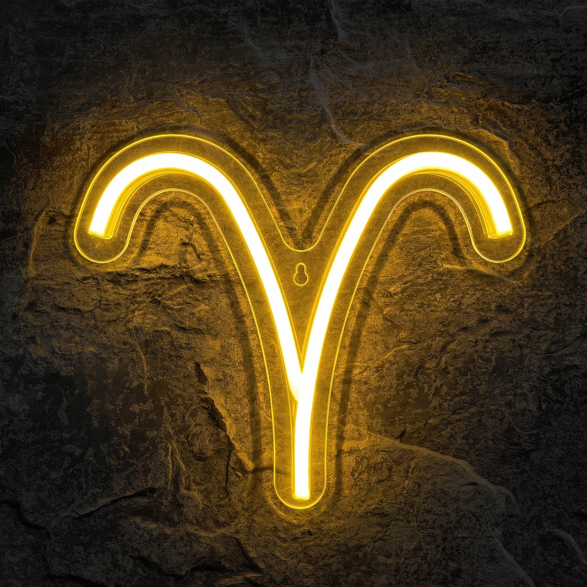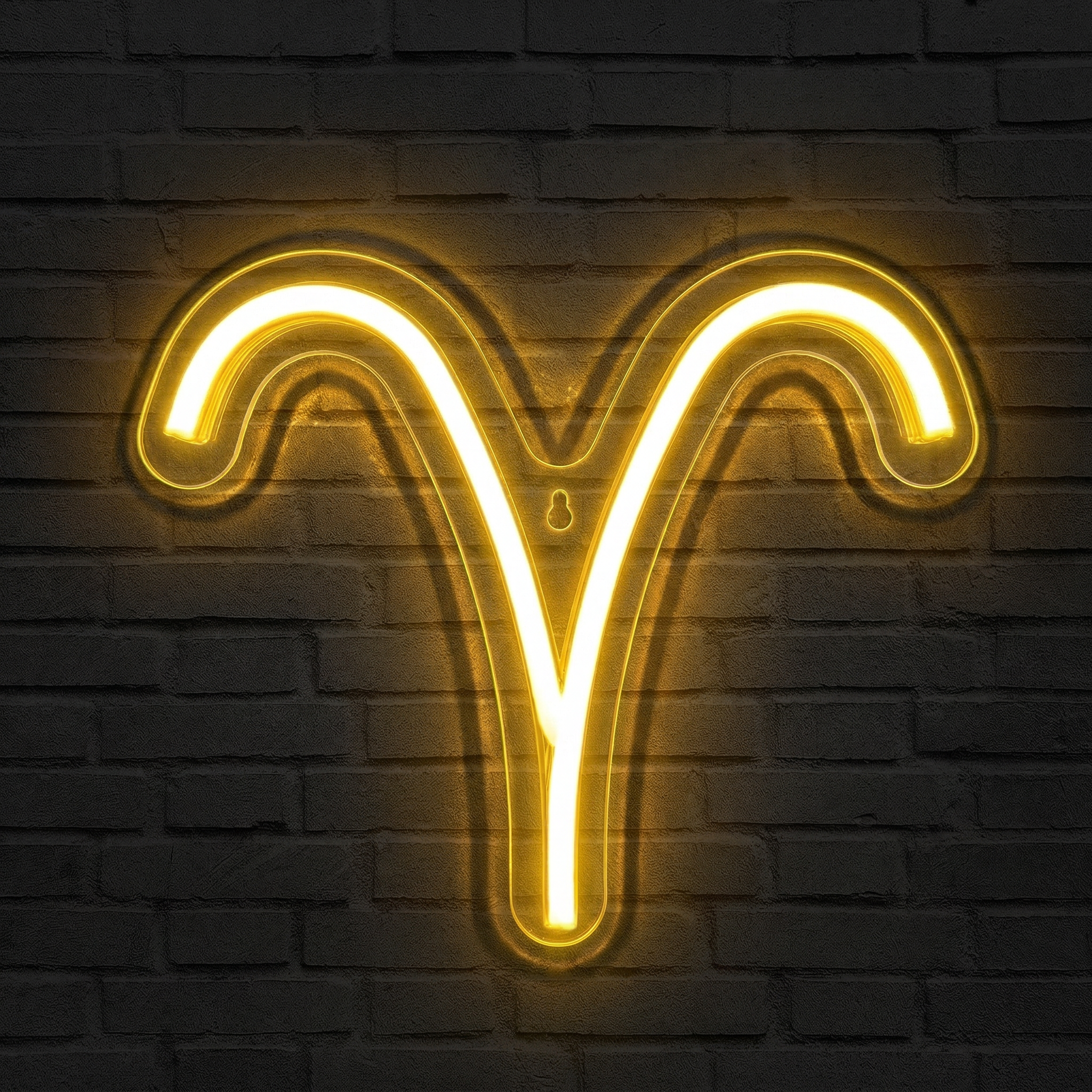 Il y a des signes qui ne passent jamais inaperçus. Le Bélier, premier signe du zodiaque, incarne l'énergie, l'audace et le feu intérieur. Notre Néon Bélier est conçu pour ceux qui assument pleinement qui ils sont — et qui veulent le montrer. Avec ses lignes fluides dessinant une tête de bélier stylisée baignée d'une lumière dorée et chaude, ce néon transforme instantanément n'importe quel mur en œuvre d'art lumineuse et personnelle.