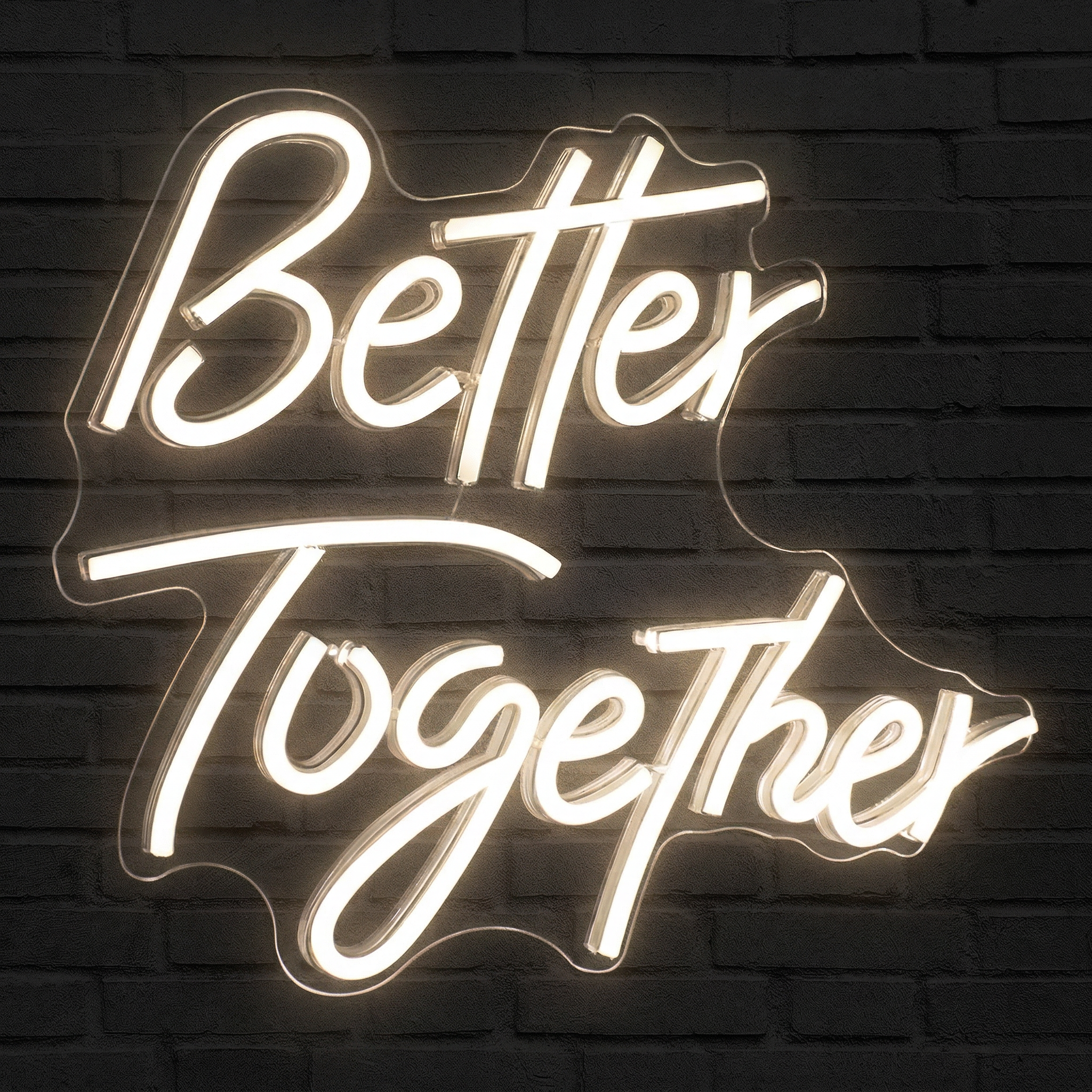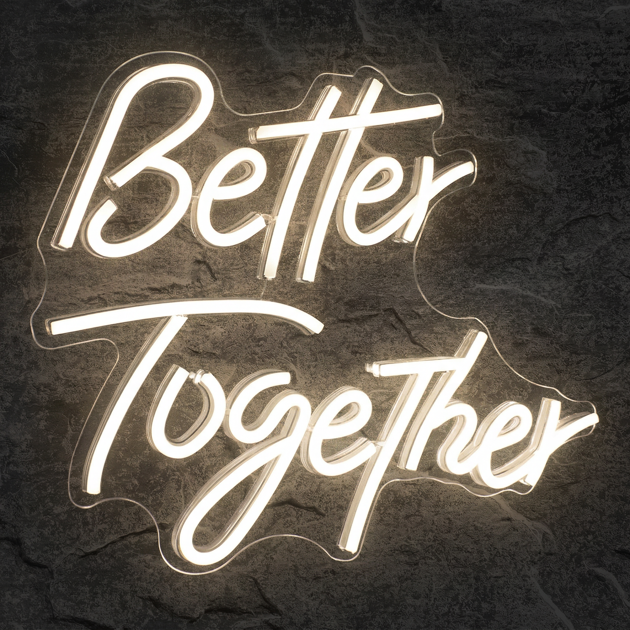 Certaines phrases ont le pouvoir de tout résumer. « Better Together » en fait partie. Deux mots, une vérité universelle — celle qui unit les couples, les familles, les amis qui ont choisi de traverser la vie côte à côte. Chez NeonStar, nous avons voulu donner à cette phrase la place qu'elle mérite : lumineuse, permanente, suspendue sur vos murs comme un rappel quotidien de ce qui compte vraiment.