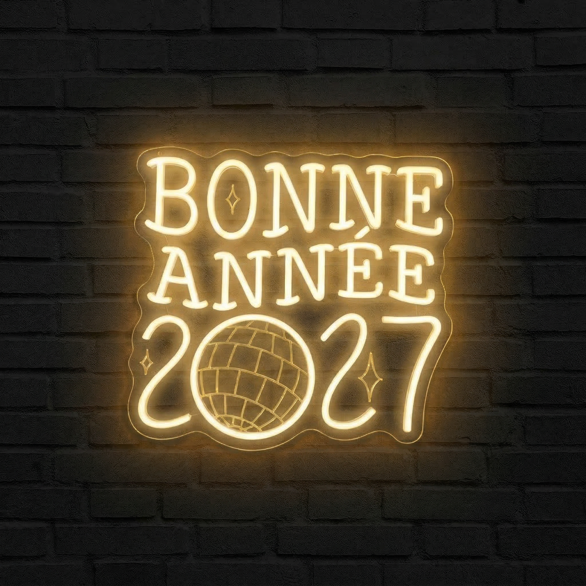 Certaines décorations se contentent d'habiller un espace. D'autres le transforment complètement. Le Néon Bonne Année 2027 NeonStar appartient résolument à la seconde catégorie. Conçu pour marquer l'entrée dans 2027 avec panache, ce néon arbore l'inscription "BONNE ANNÉE 2027" en lettres blanches lumineuses, avec un détail qui fait toute la différence : un globe terrestre stylisé remplace ingénieusement le zéro. Une façon poétique et graphique de rappeler que la fête, cette nuit-là, est planétaire.