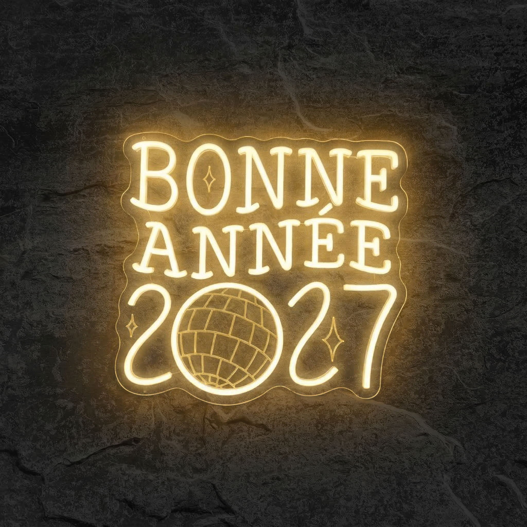 Comme tous nos produits, ce néon est couvert par notre garantie 3 ans pièces et main d'œuvre, et sa durée de vie estimée dépasse les 100 000 heures. Vous pourrez l'utiliser pour ce réveillon 2027, mais aussi le ressortir année après année si le cœur vous en dit — ou simplement le garder comme pièce déco lumineuse à l'année. Chez NeonStar, nous fabriquons des objets qui durent, parce qu'une belle lumière mérite de briller longtemps.