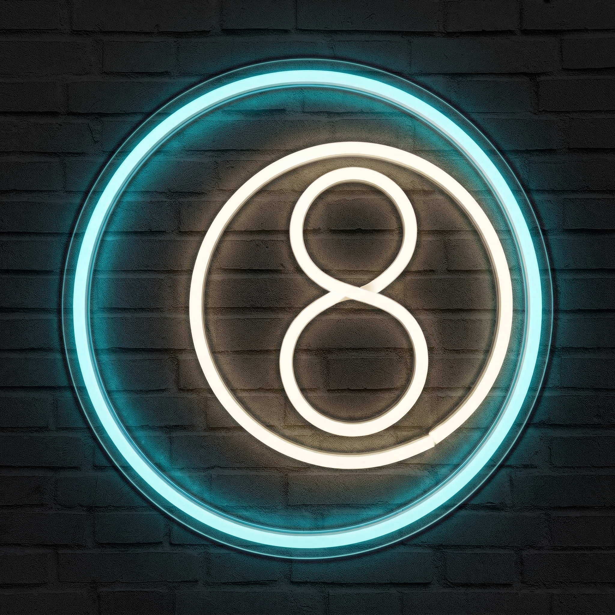 Il y a des symboles qui transcendent le jeu pour devenir de véritables icônes culturelles. La boule 8 du billard en fait partie. Redoutée et convoitée à la fois, elle concentre à elle seule toute la tension, le style et l'adrénaline du billard américain. Chez NeonStar, nous avons voulu lui rendre hommage avec un néon à la hauteur de sa légende : deux cercles concentriques lumineux — blanc à l'intérieur, bleu électrique à l'extérieur — encadrant un chiffre 8 central d'un blanc éclatant. Le résultat est saisissant.