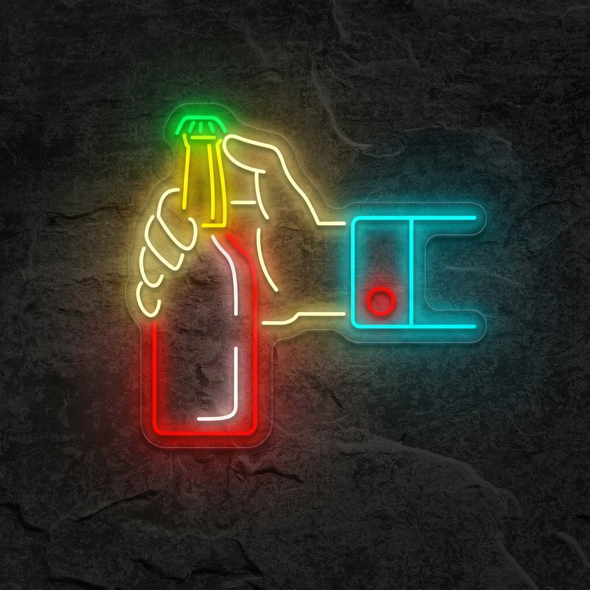 Chez NeonStar, nous avons conçu ce néon pour ceux qui aiment recevoir, qui cultivent leur coin bar avec soin, ou qui veulent simplement afficher leur passion pour la bière avec un brin d'humour et beaucoup de style. La silhouette d'une bouteille ouverte, lumineuse et précise, devient un vrai point focal dans la pièce. Elle capte le regard, lance la conversation et donne immédiatement le ton : ici, on sait s'amuser.