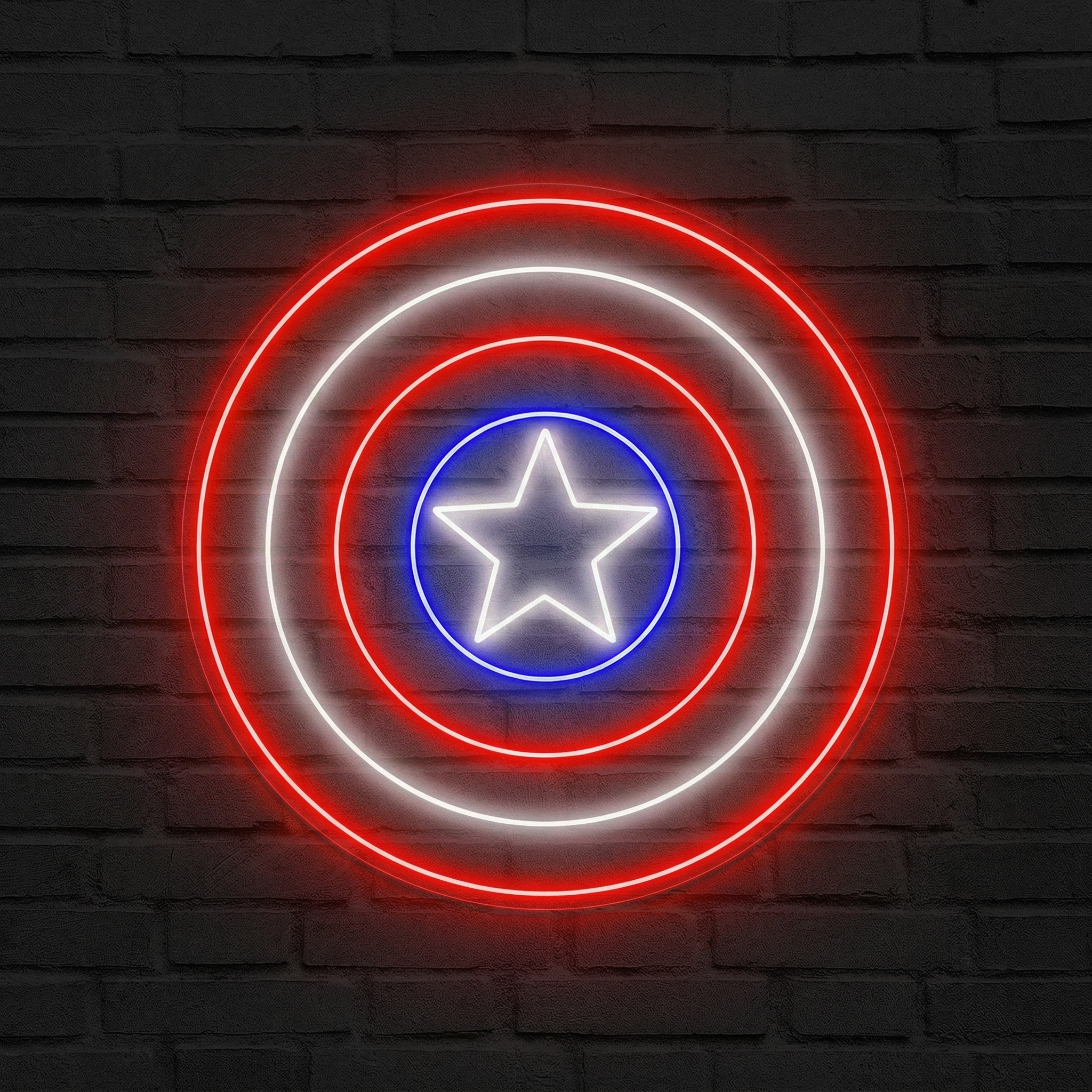 Le Néon Bouclier Captain America NeonStar reproduit avec une fidélité remarquable les lignes concentriques et les couleurs caractéristiques de ce symbole légendaire. Les cercles distinctifs, le contraste rouge et bleu, l'étoile centrale — chaque détail est pensé pour coller au plus près de l'original tout en sublimant l'esthétique lumineuse propre aux néons LED. Le résultat est saisissant : un bouclier qui semble prêt à s'arracher du mur pour partir au combat.