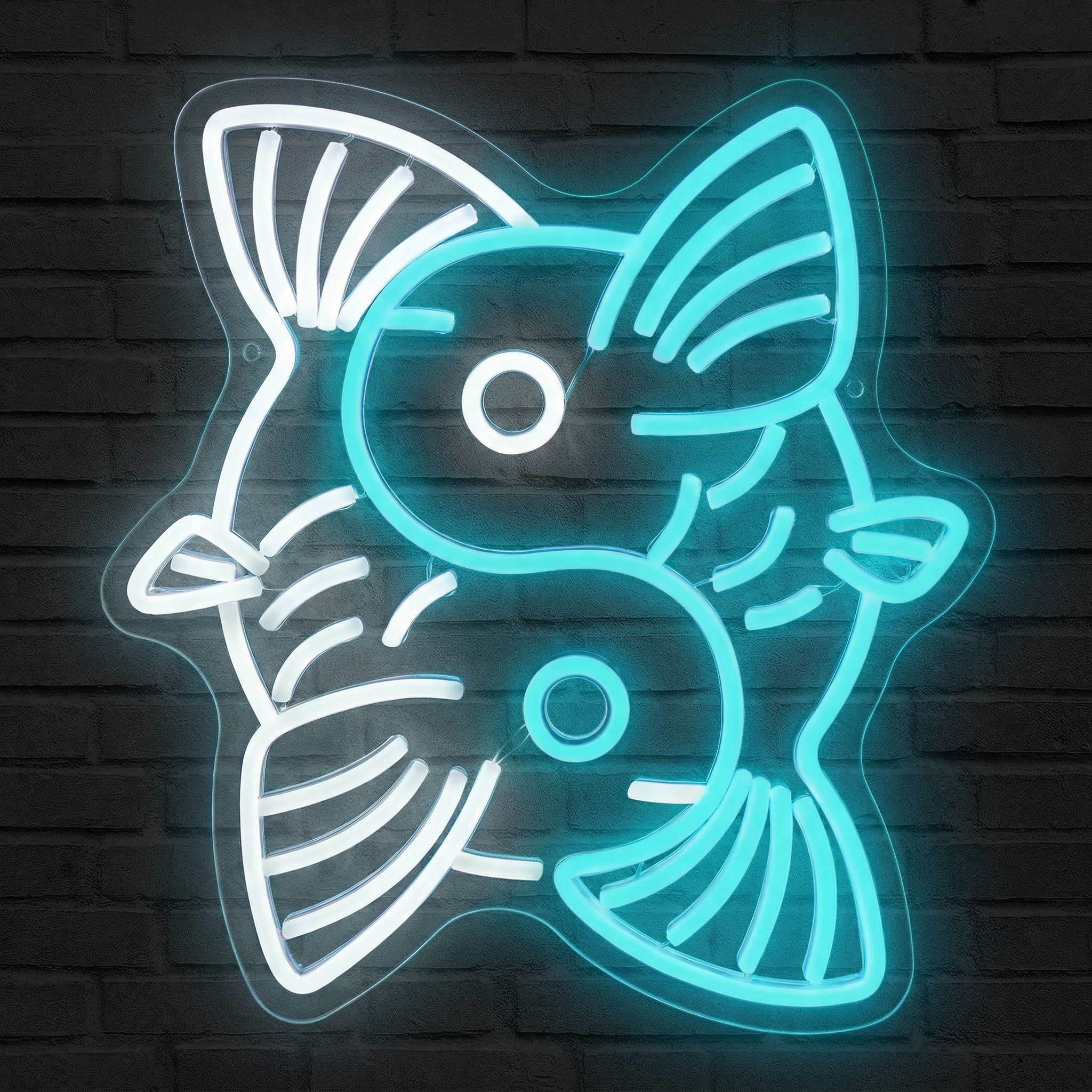 Illuminez votre intérieur d'une énergie zen et mystérieuse avec le Néon Carpe Koï Yin Yang NeonStar — blanc éclatant et bleu turquoise en parfaite harmonie.