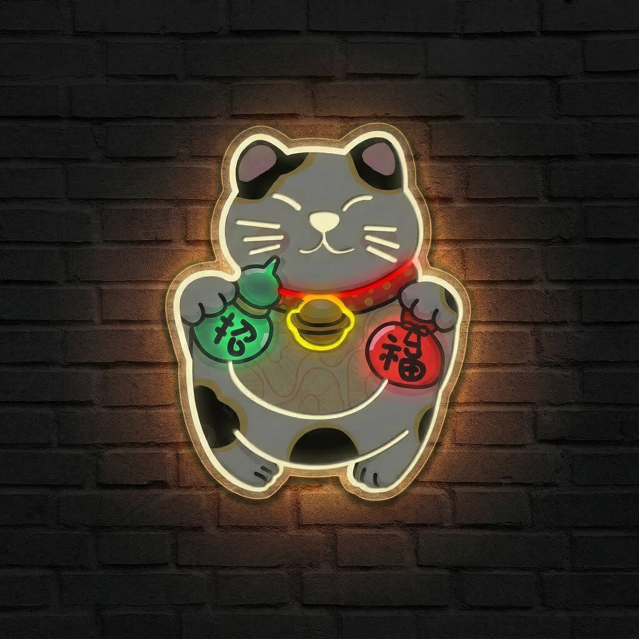 Il y a des objets qui apportent instantanément une âme à un espace. Le Néon Chat Chanceux Japonais est de ceux-là. Inspiré du célèbre Maneki-neko — ce petit félin à la patte levée symbole de chance, de prospérité et de bonheur dans la culture japonaise — ce néon transforme n'importe quel mur en une fenêtre ouverte sur l'univers kawaii et coloré du Japon. Un seul coup d'œil et le sourire est garanti.