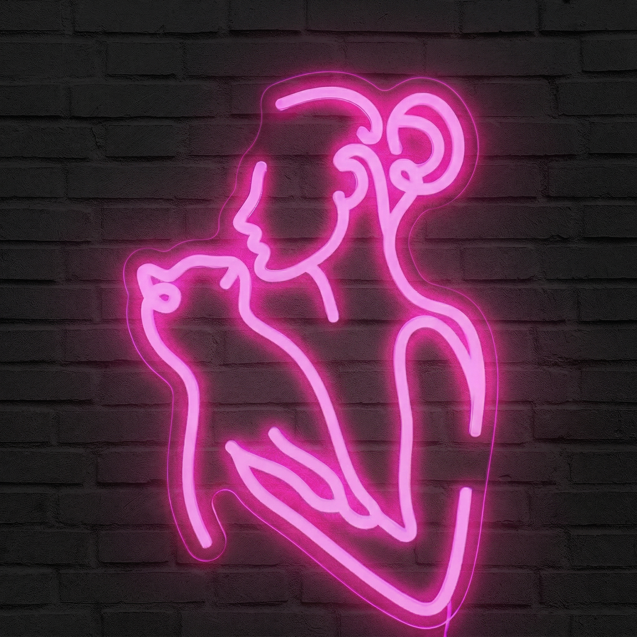 Un néon silhouette femme et chat, élégant et mystérieux, pour sublimer votre intérieur avec une touche féline et sophistiquée. Idéal en déco chambre, salon ou boutique.