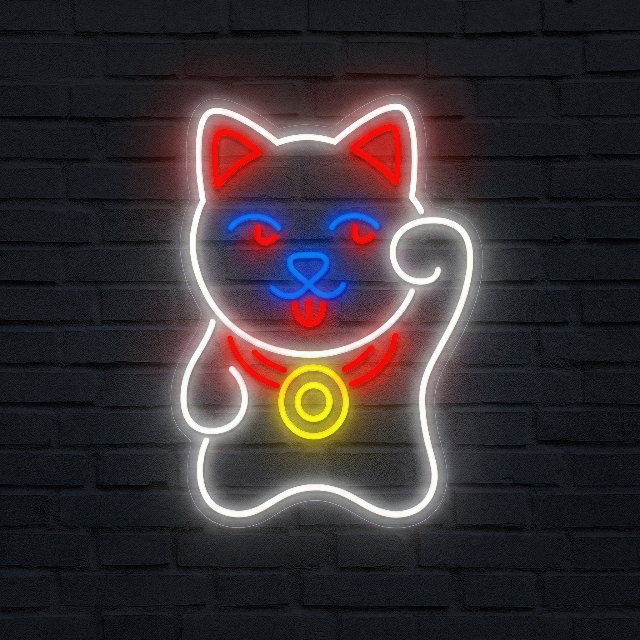 Le Maneki Neko, littéralement « chat qui invite » en japonais, est depuis des siècles un symbole de chance, de prospérité et de bonne fortune. Trôner dans une boutique, un restaurant, un salon ou une chambre, ce néon incarne à la fois la richesse culturelle de l'art japonais et l'esthétique contemporaine des enseignes lumineuses urbaines. Chez NeonStar, nous avons voulu rendre hommage à cette icône avec un rendu fidèle, chaleureux et immédiatement reconnaissable.