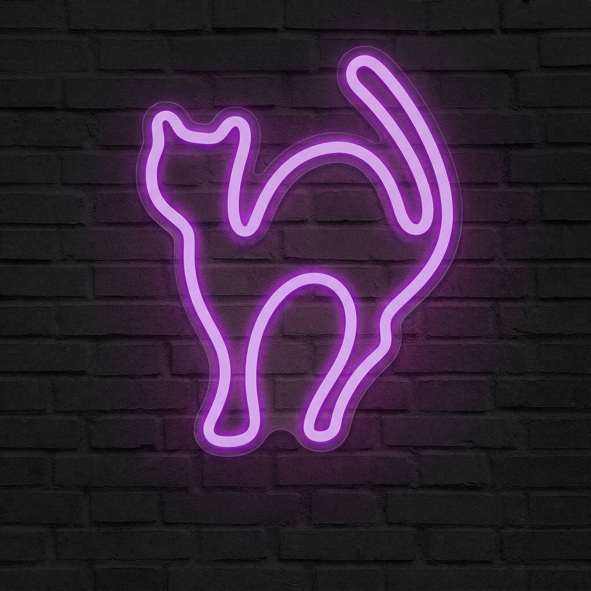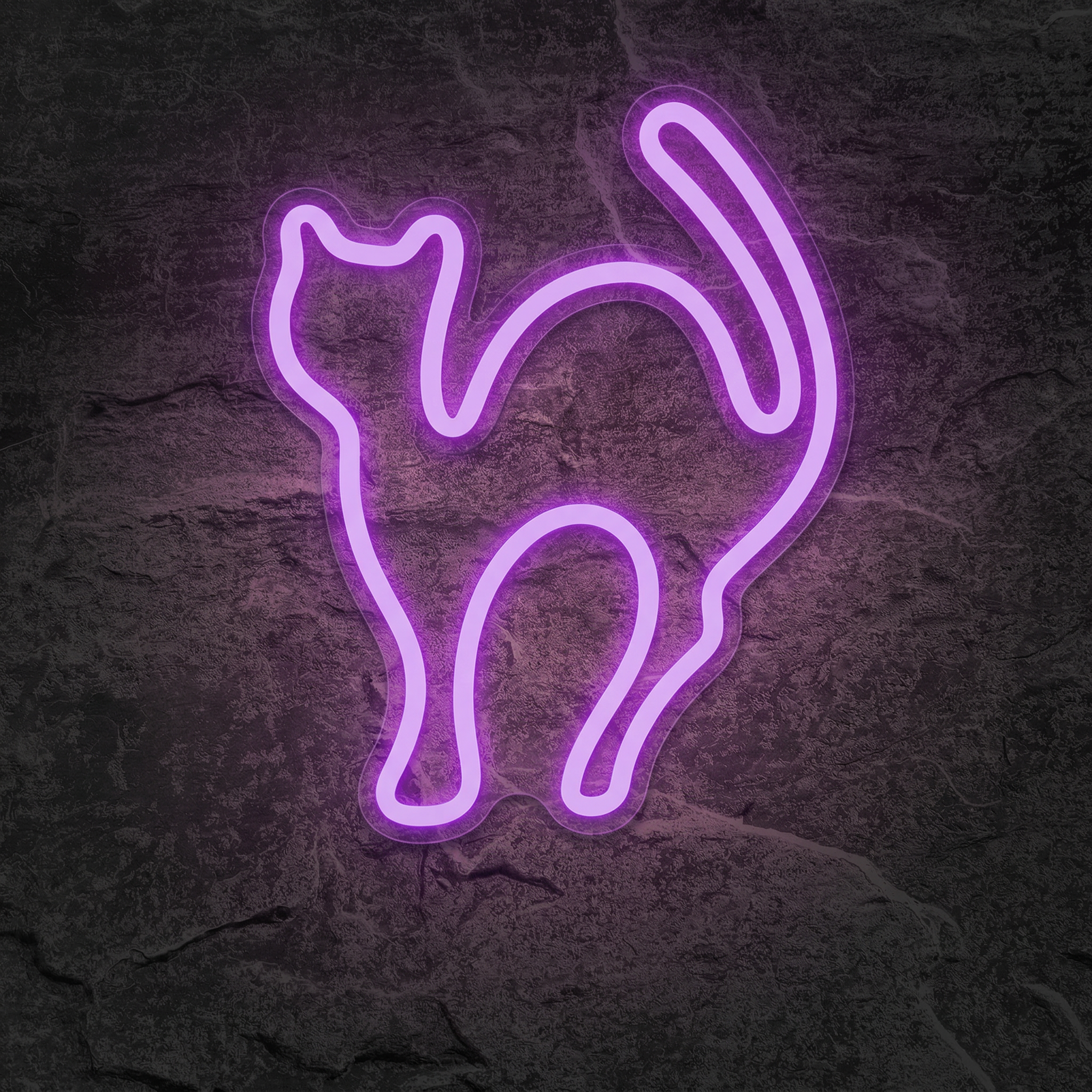 Adoptez ce néon chat violet lumineux pour illuminer votre intérieur avec une touche féline et envoûtante. Idéal en décoration chambre, bureau ou salon.