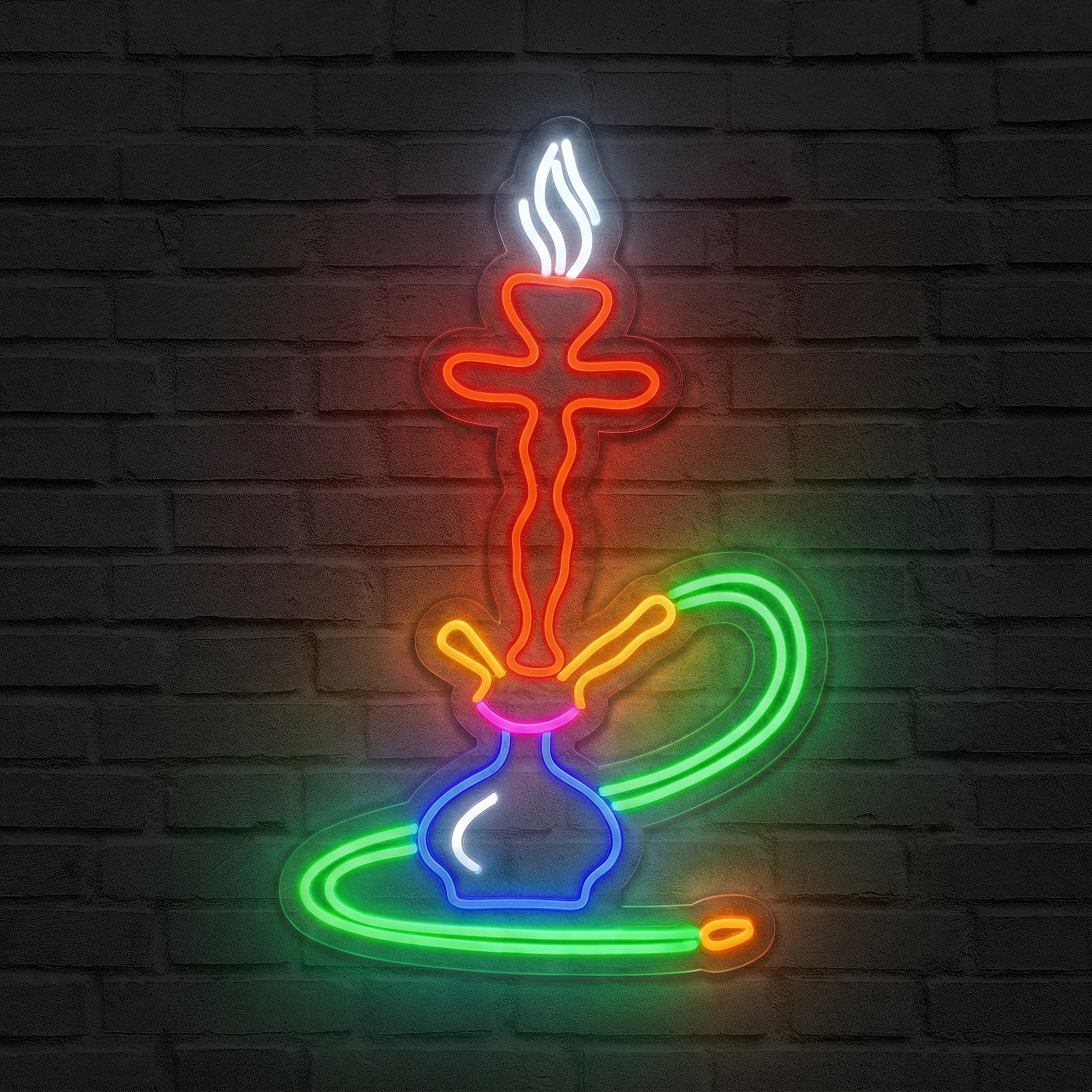 Il y a des objets qui racontent une histoire rien qu'en brillant. Notre Néon Chicha en fait partie. Avec son réservoir bleu profond, son corps rouge vif et son tuyau vert émeraude, il restitue toute la richesse visuelle de la culture du narguilé dans une pièce unique, lumineuse et immédiatement reconnaissable. Accrochez-le dans votre salon, votre cave à cigares, votre bar à chicha ou votre salle de réception — il deviendra instantanément le point focal de la pièce.
