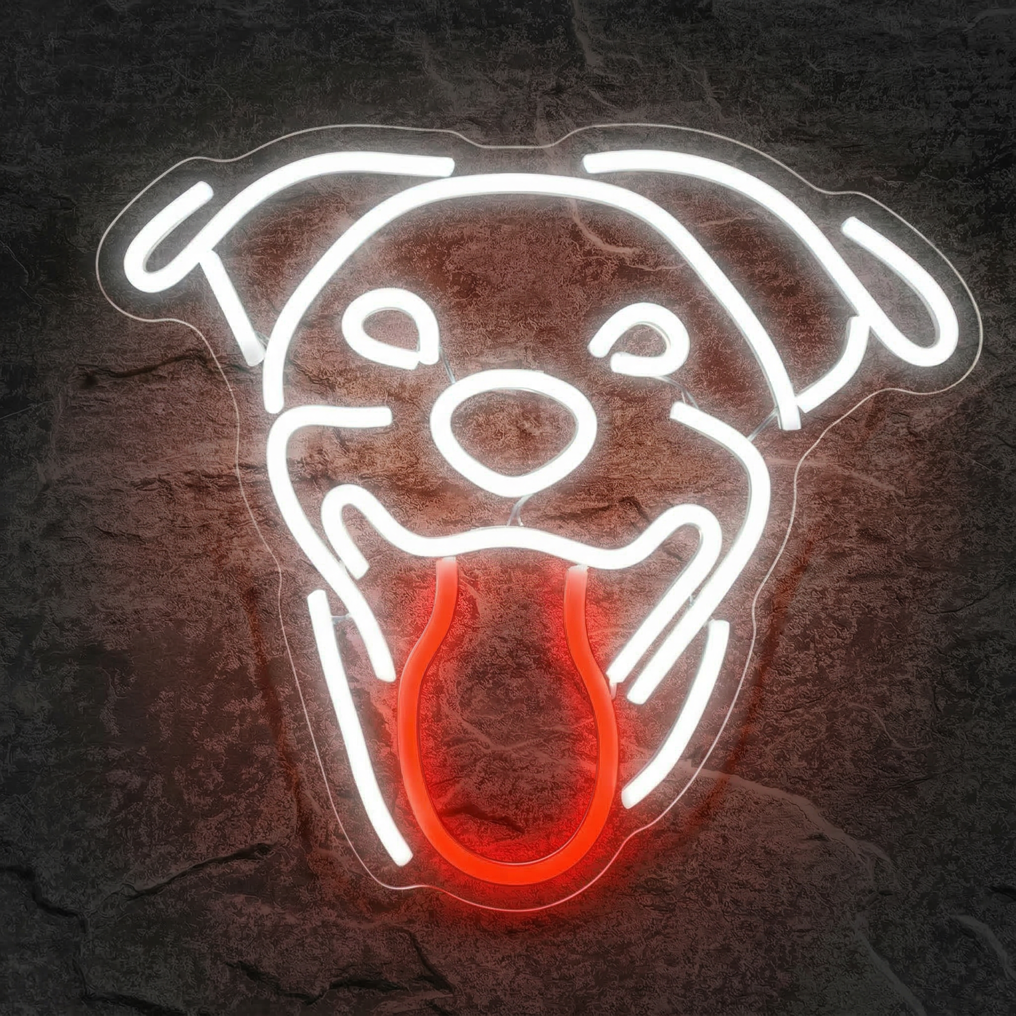 Chez NeonStar, nous ne faisons aucun compromis sur la qualité. Chaque Néon Chien est fabriqué à partir de tubes LED flexibles haute densité, fixés sur un fond en acrylique transparent découpé au laser avec une précision millimétrique. Le résultat ? Un rendu propre, élégant, où le chien semble véritablement flotter sur votre mur. La langue rouge vif et les contours du visage sont reproduits avec un niveau de détail qui fait toute la différence — on est loin des imitations bas de gamme que l'on trouve ailleurs.