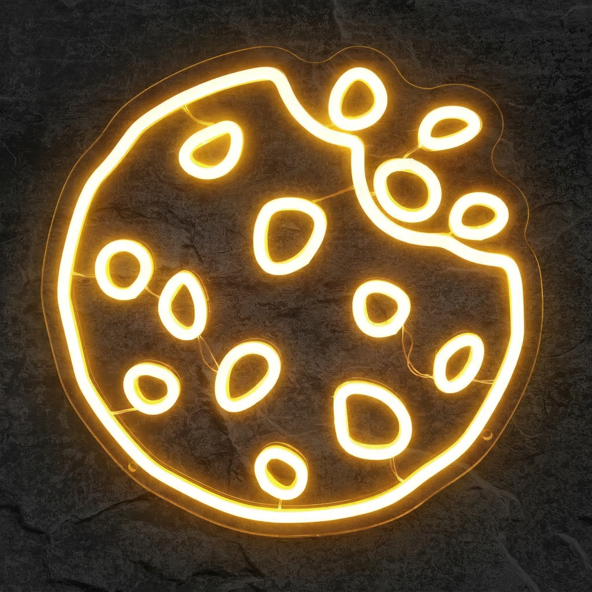 Chez NeonStar, nous avons conçu ce néon pour les amoureux du sucré, les passionnés de food culture et tous ceux qui veulent sortir des sentiers battus en matière de déco. Sa forme circulaire parfaite, ses détails pépites minutieusement reproduits en LED et son éclat chaud et appétissant en font une pièce maîtresse que vos invités ne manqueront pas de remarquer — et de photographier. Le Néon Cookie est fait pour être vu, admiré et partagé.