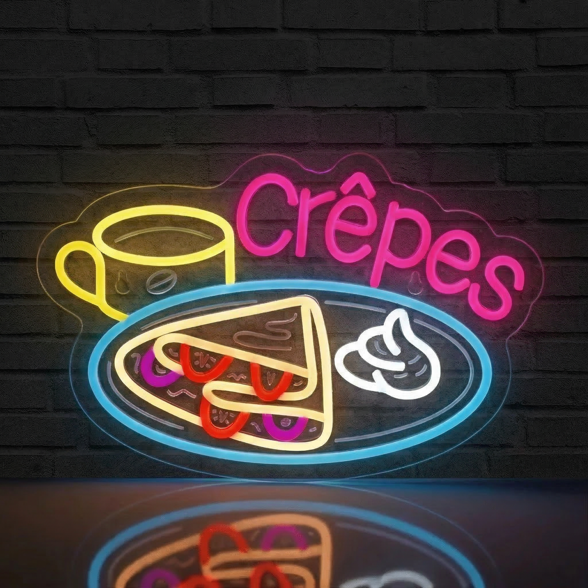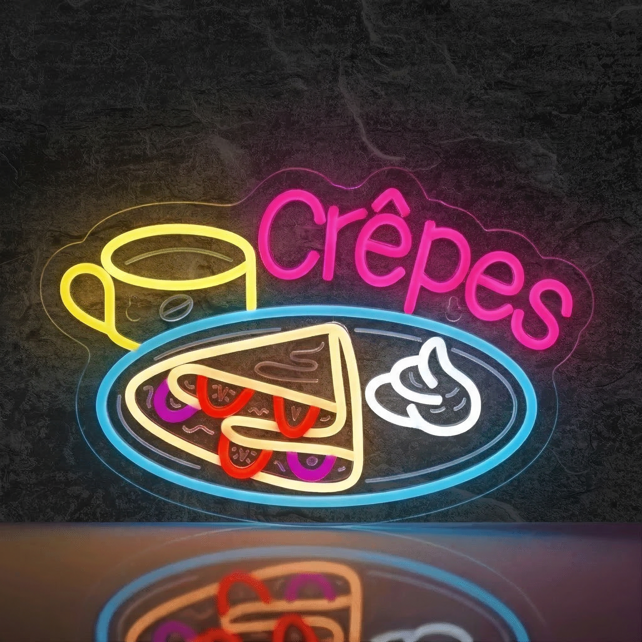 Illuminez votre crêperie, cuisine ou restaurant avec ce néon LED Crêpes multicolore : une enseigne gourmande et lumineuse signée NeonStar.