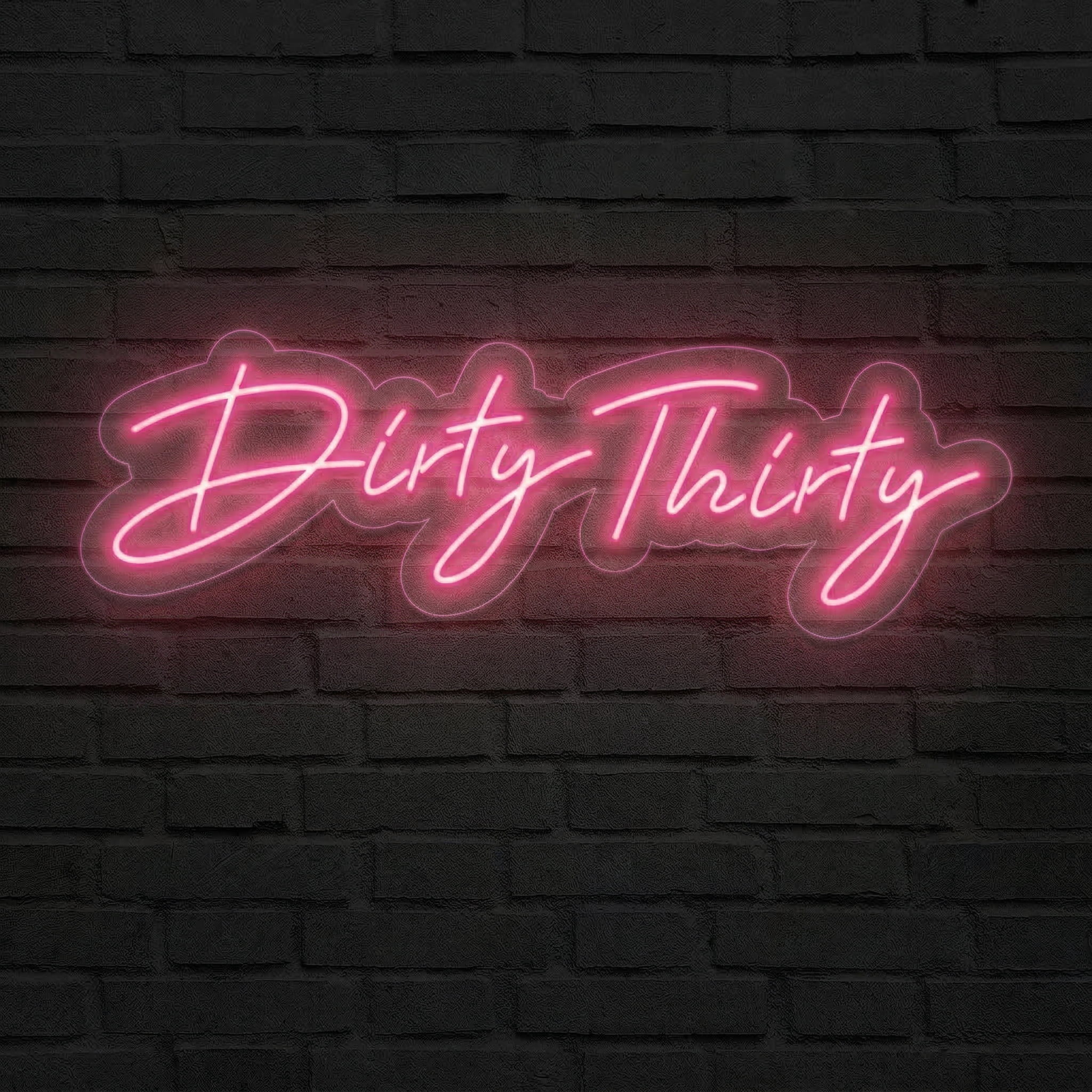 Chez NeonStar, nous avons conçu ce néon pour les trentenaires qui ont le sens du style et de l'humour. "Dirty Thirty" — l'expression anglaise culte pour les 30 ans — s'affiche en lettres lumineuses avec cette énergie à la fois festive et un brin provocante qui correspond parfaitement à cet âge charnière. C'est le genre de déco qui fait instantanément l'ambiance, celle dont on se souvient longtemps après la soirée.