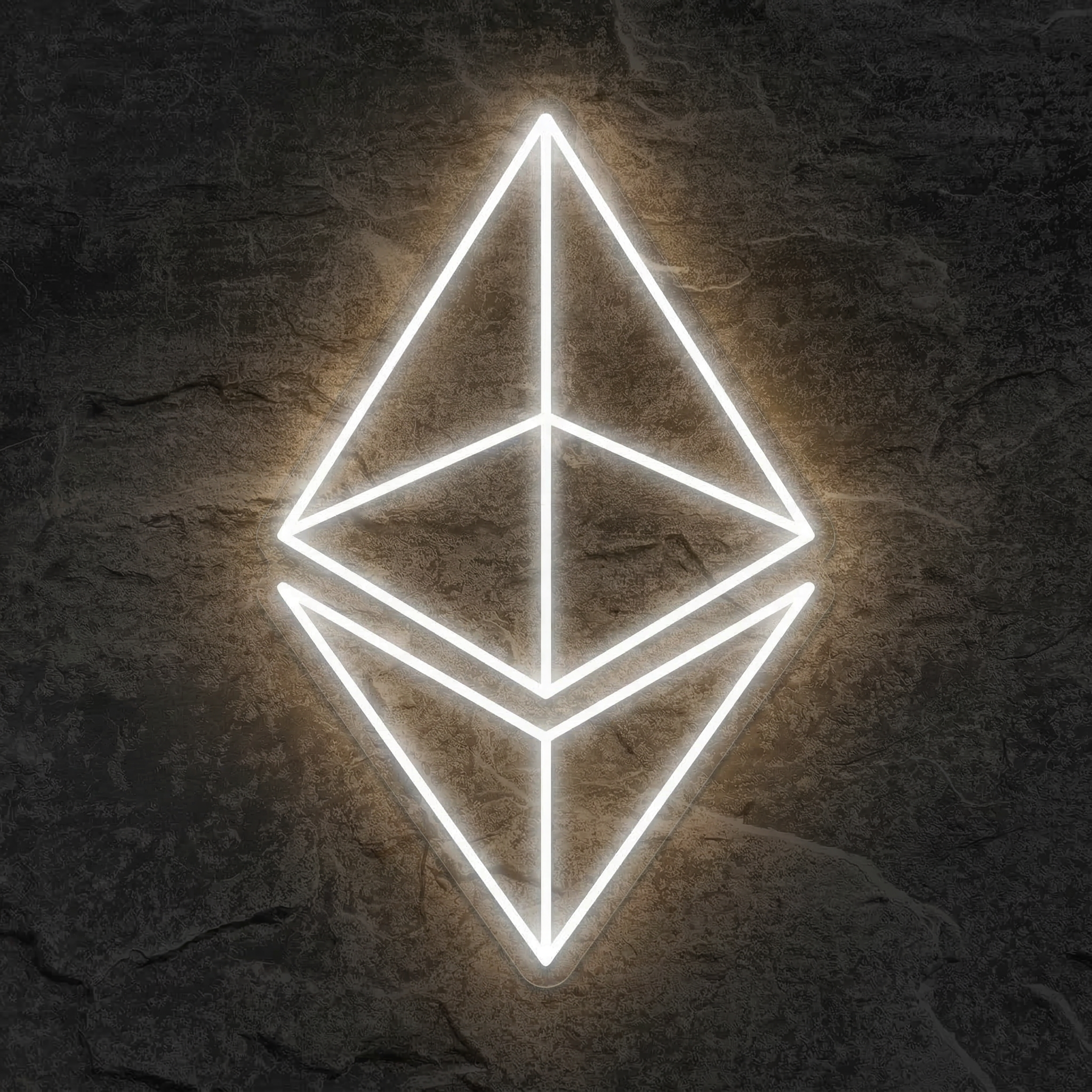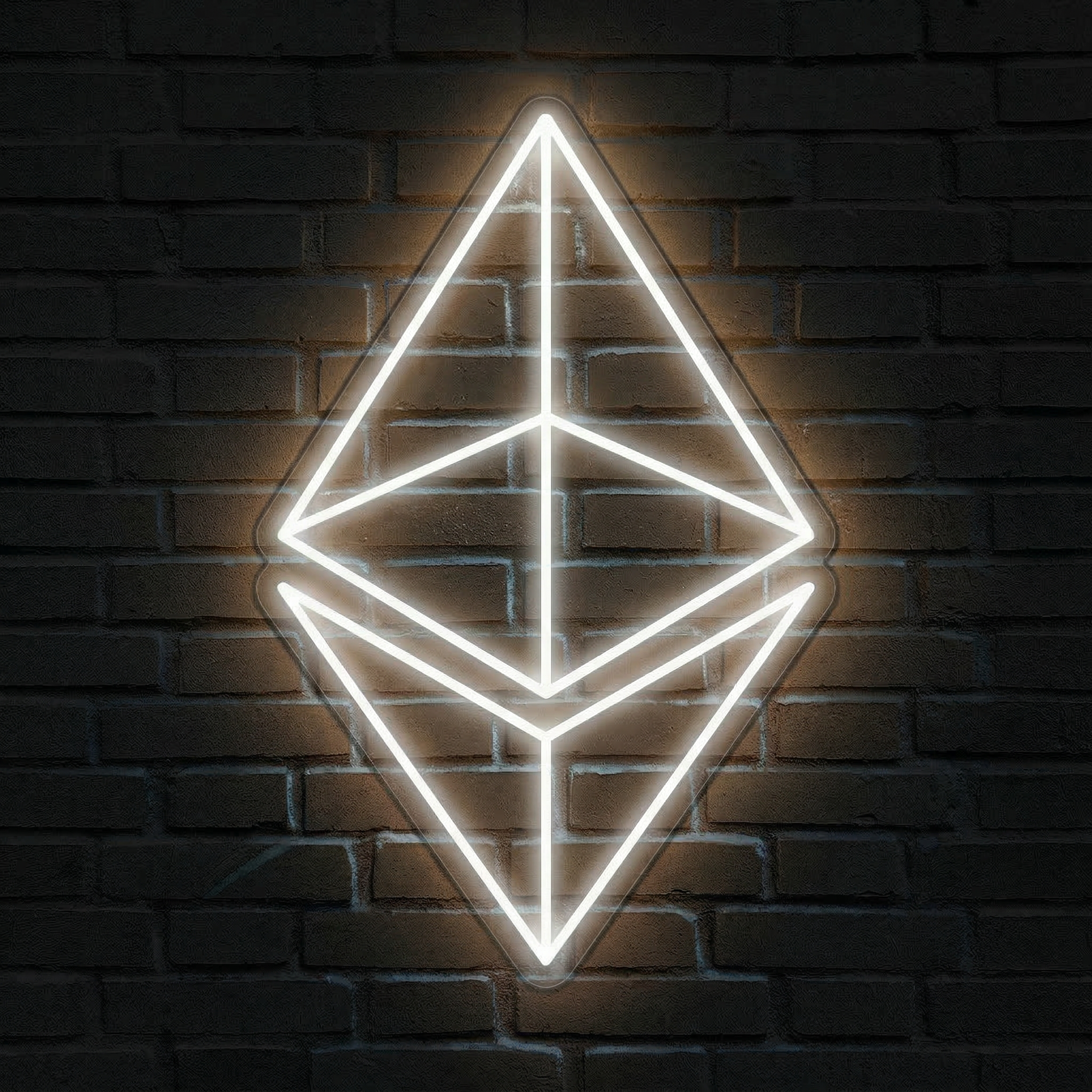 Le Néon Ethereum NeonStar affiche le mot 'Ethereum' en lettres lumineuses. Si vous souhaitez un design avec le logo diamant ETH, contactez notre équipe pour une création personnalisée — c'est l'un de nos services sur mesure.