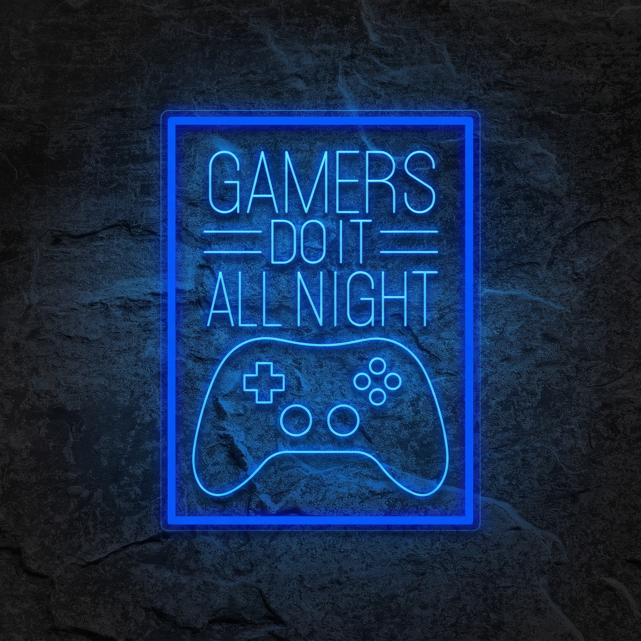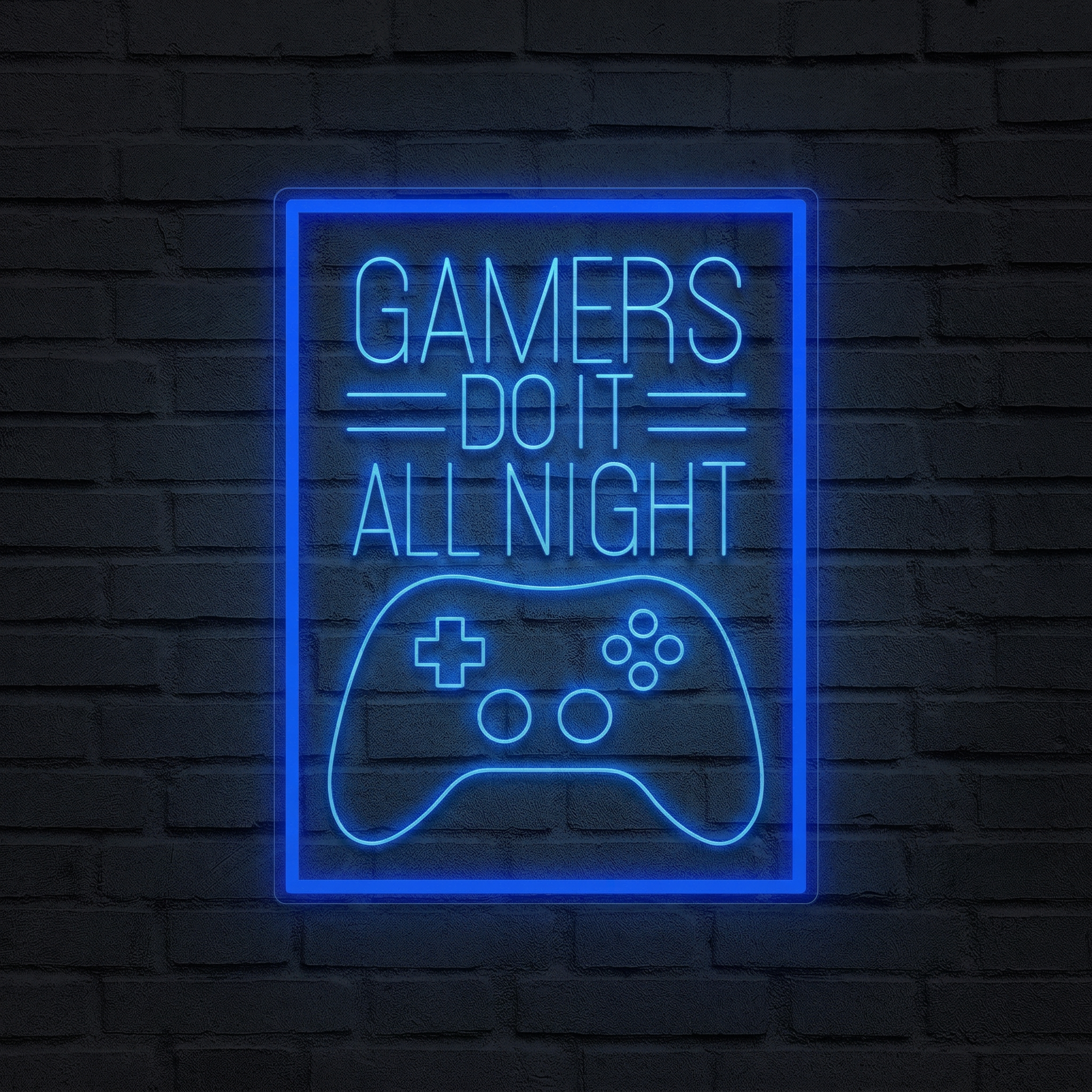 Il y a des phrases qui définissent toute une culture. "Gamers Do It All Night" en fait partie. Ce néon LED est bien plus qu'une décoration — c'est un manifeste lumineux pour tous ceux qui ont déjà sacrifié une nuit de sommeil pour terminer une quête, atteindre le rang suivant ou finir un boss final. Accroché dans votre setup gaming, votre chambre ou votre salle de streaming, il pose immédiatement l'ambiance et dit tout ce qu'il y a à dire sur vous.