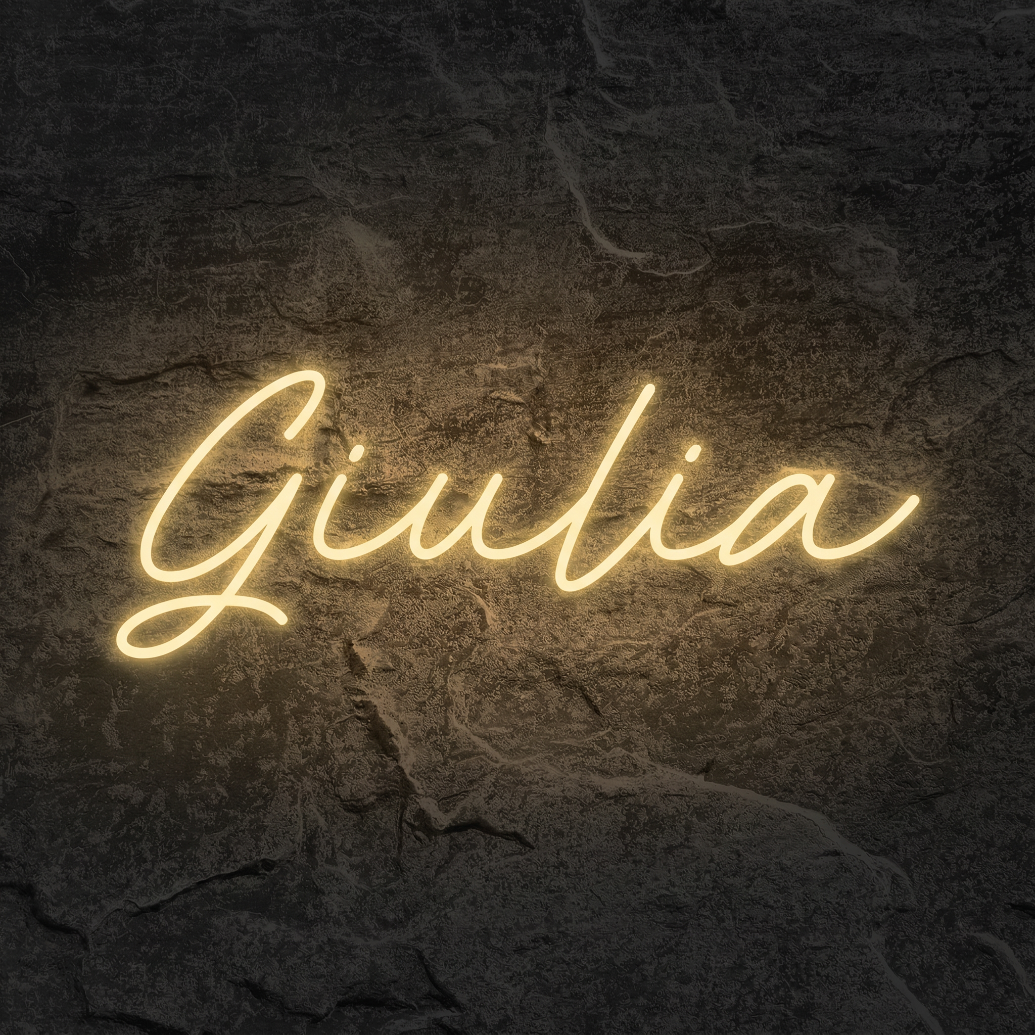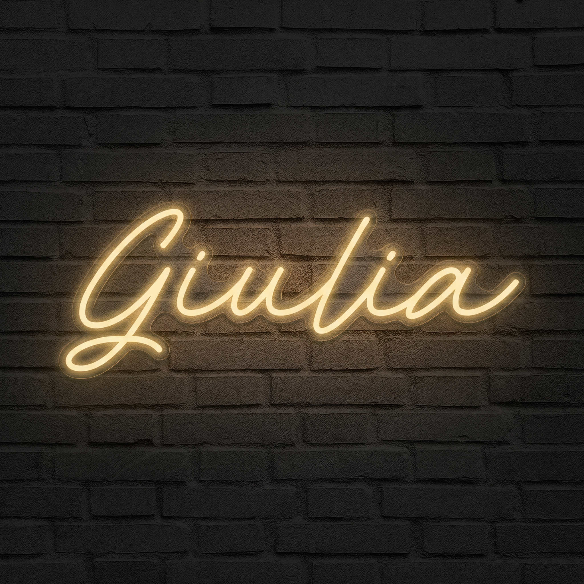 Le néon prénom Giulia — une lumière douce et élégante pour personnaliser votre intérieur avec caractère. Idéal en chambre, bureau ou en cadeau.