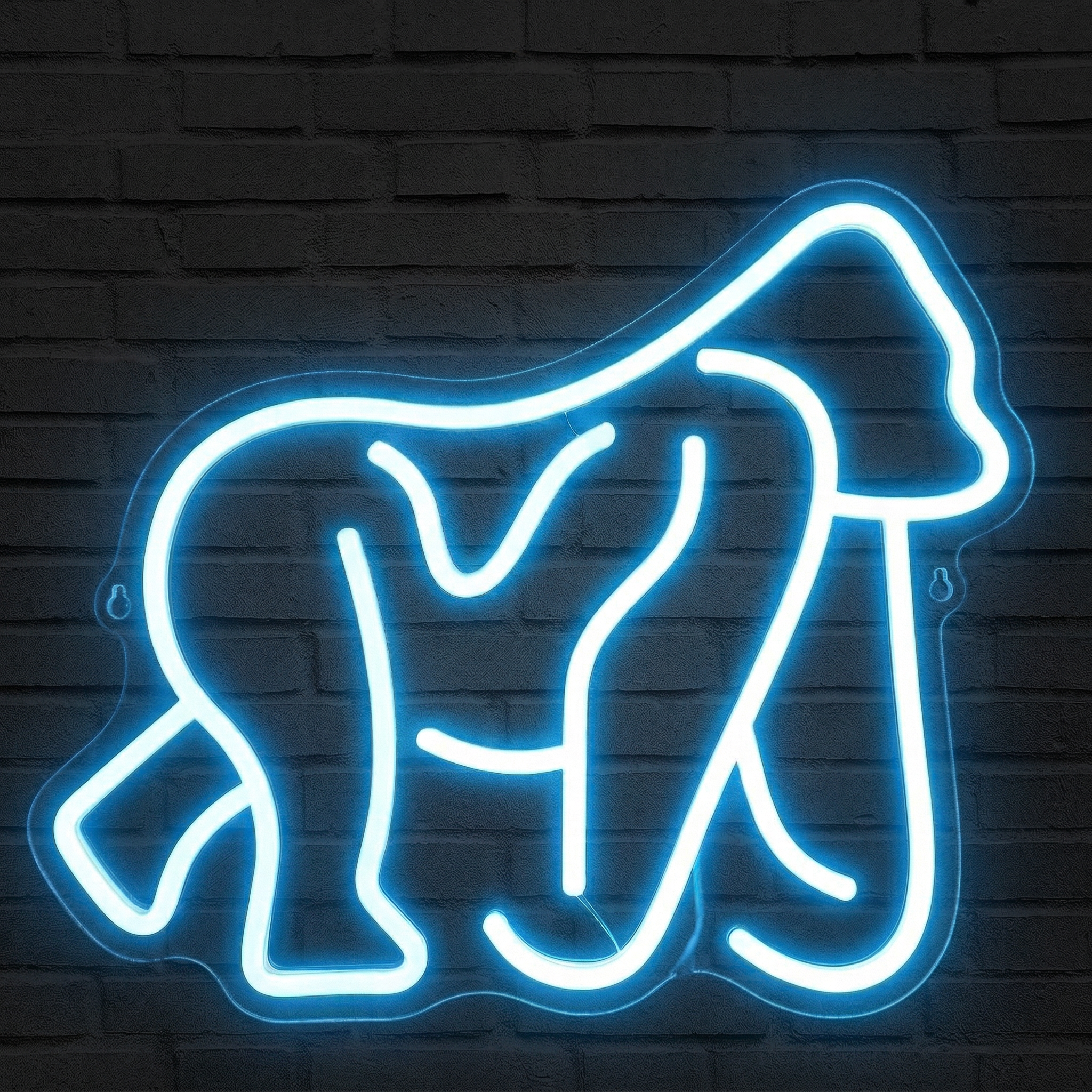Le design épuré de ce néon retrace la silhouette caractéristique d'un gorille en marche — dos courbé, puissance suggérée, présence indéniable. Baigné dans une lumière bleue profonde et envoûtante, le rendu final est à mi-chemin entre l'art contemporain et l'esthétique streetwear. C'est le genre de pièce qui capte le regard dès l'entrée dans une pièce, et dont on ne se lasse pas. Que vous soyez passionné de nature sauvage, collectionneur d'art urbain ou simplement à la recherche d'une déco qui sort des sentiers battus, ce néon est fait pour vous.