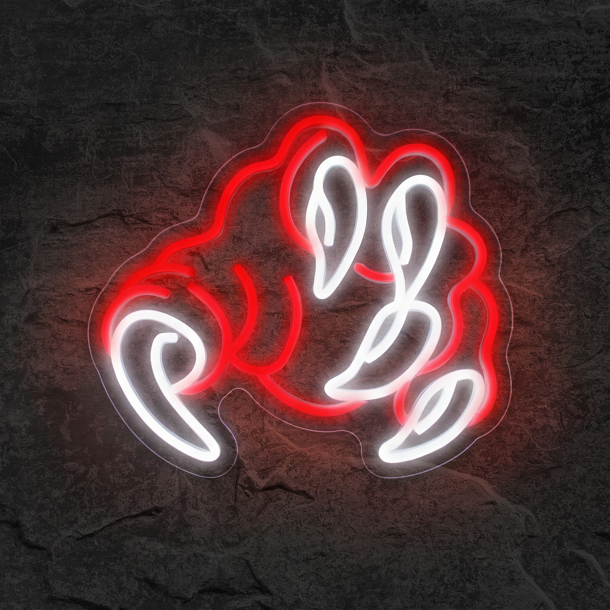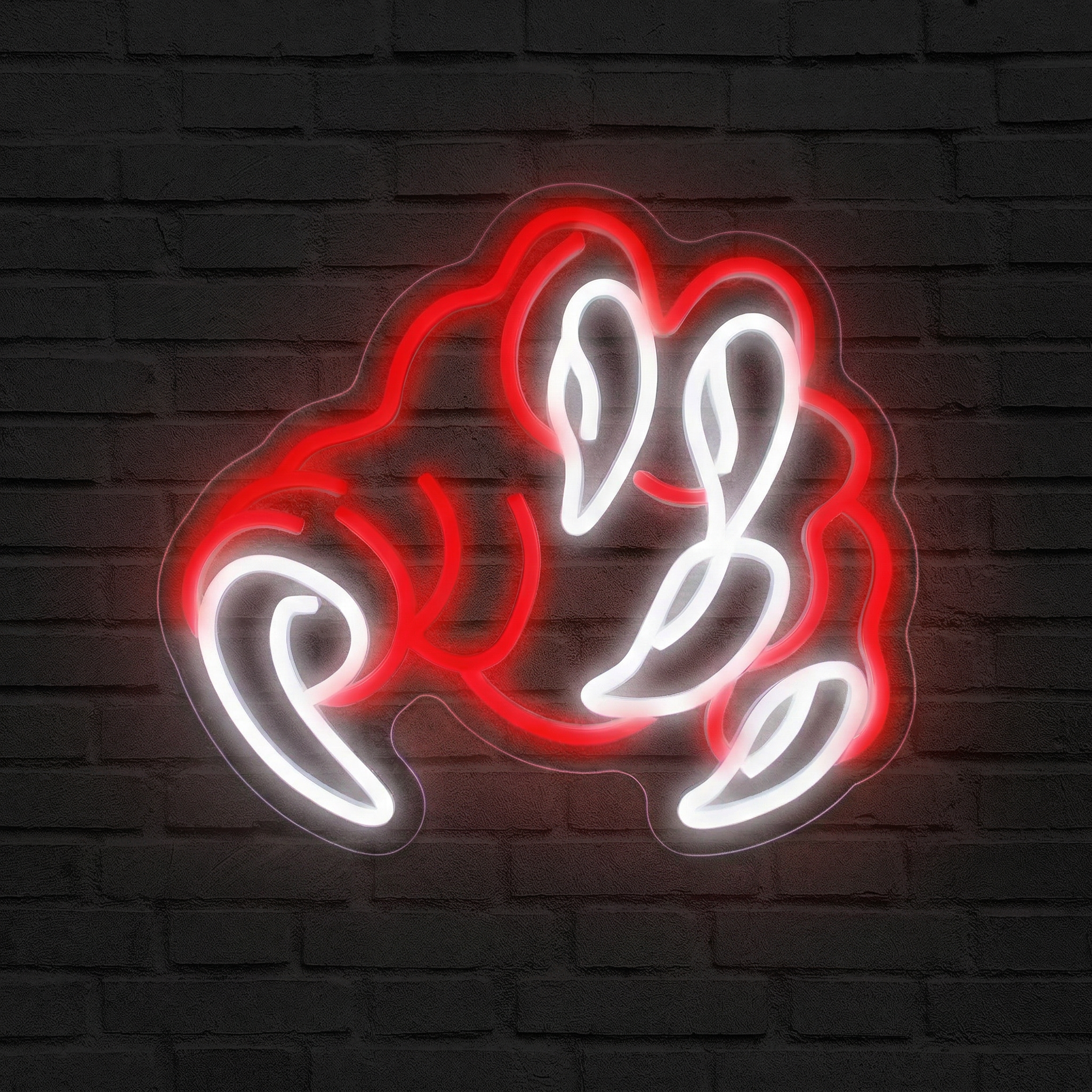 Chez NeonStar, chaque néon est fabriqué avec des tubes LED flexibles de haute qualité, montés sur un fond acrylique transparent découpé au laser avec une précision millimétrique. Le résultat : les griffes semblent littéralement surgir du mur, sans support apparent, comme si la main démoniaque traversait directement la cloison. L'effet visuel est saisissant, de jour comme de nuit — mais c'est dans l'obscurité totale que le Néon Griffes révèle toute sa puissance.