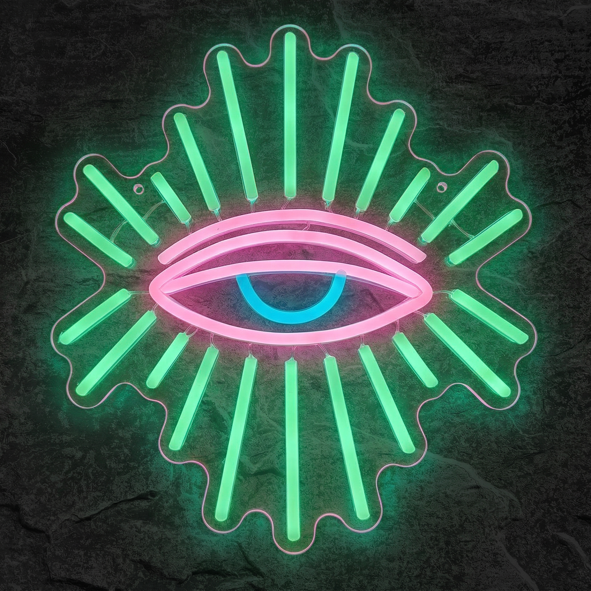 L'œil représenté sur ce néon évoque l'Œil de la Providence, symbole universel de vigilance, de protection et de sagesse divine présent dans de nombreuses cultures et traditions ésotériques. Il est aussi associé à des thématiques contemporaines comme la conscience, la connexion et la surveillance, ce qui en fait un motif à la fois intemporel et résolument moderne.