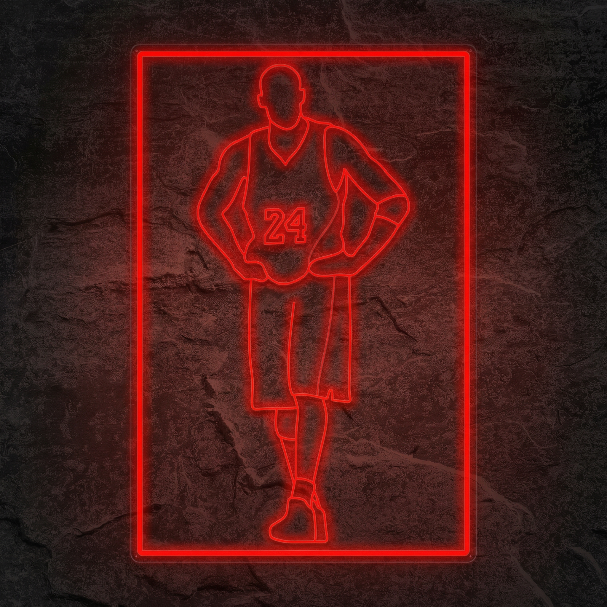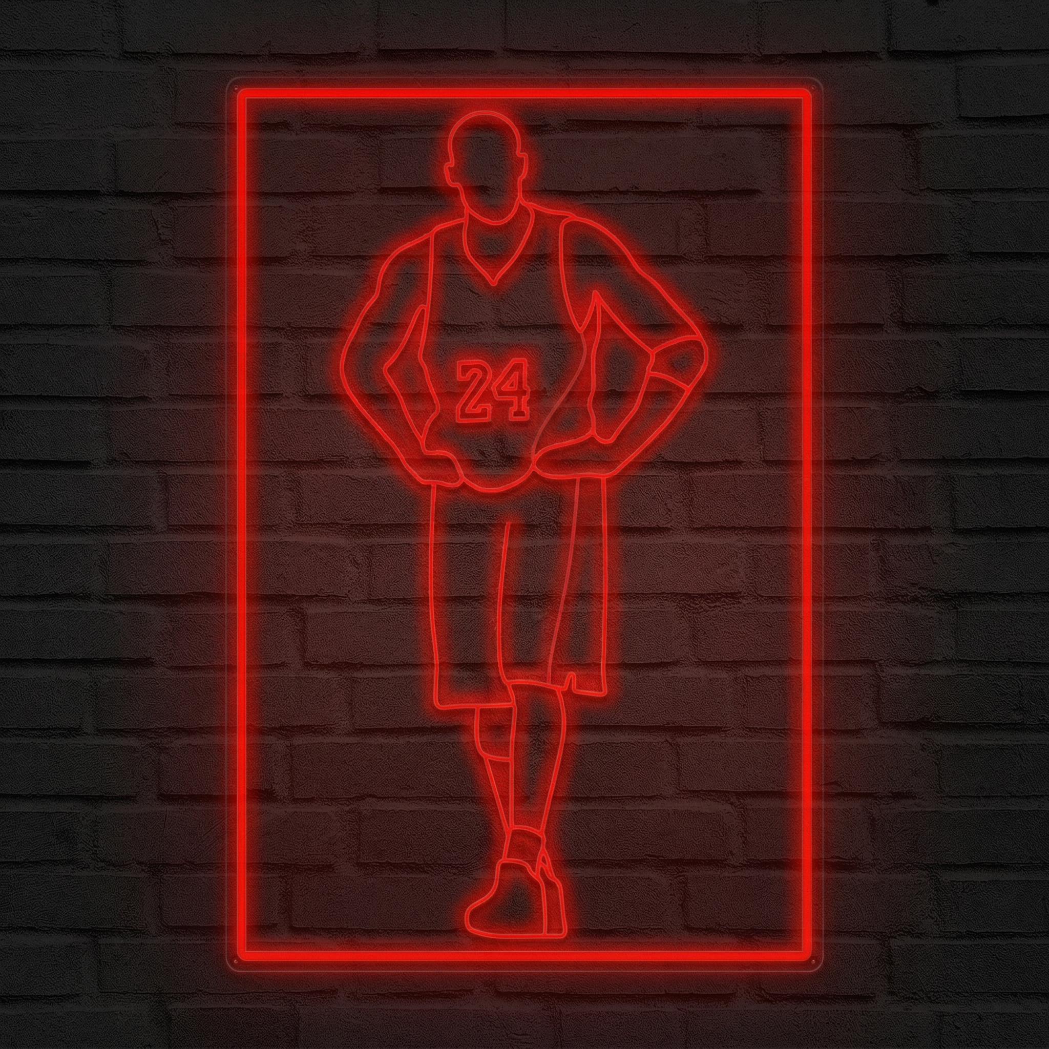 Le Néon Joueur De Basket mesure 50 cm sur son côté le plus long. C'est une taille idéale pour une chambre, un bureau ou un espace gaming — suffisamment imposante pour attirer l'œil sans surcharger l'espace.