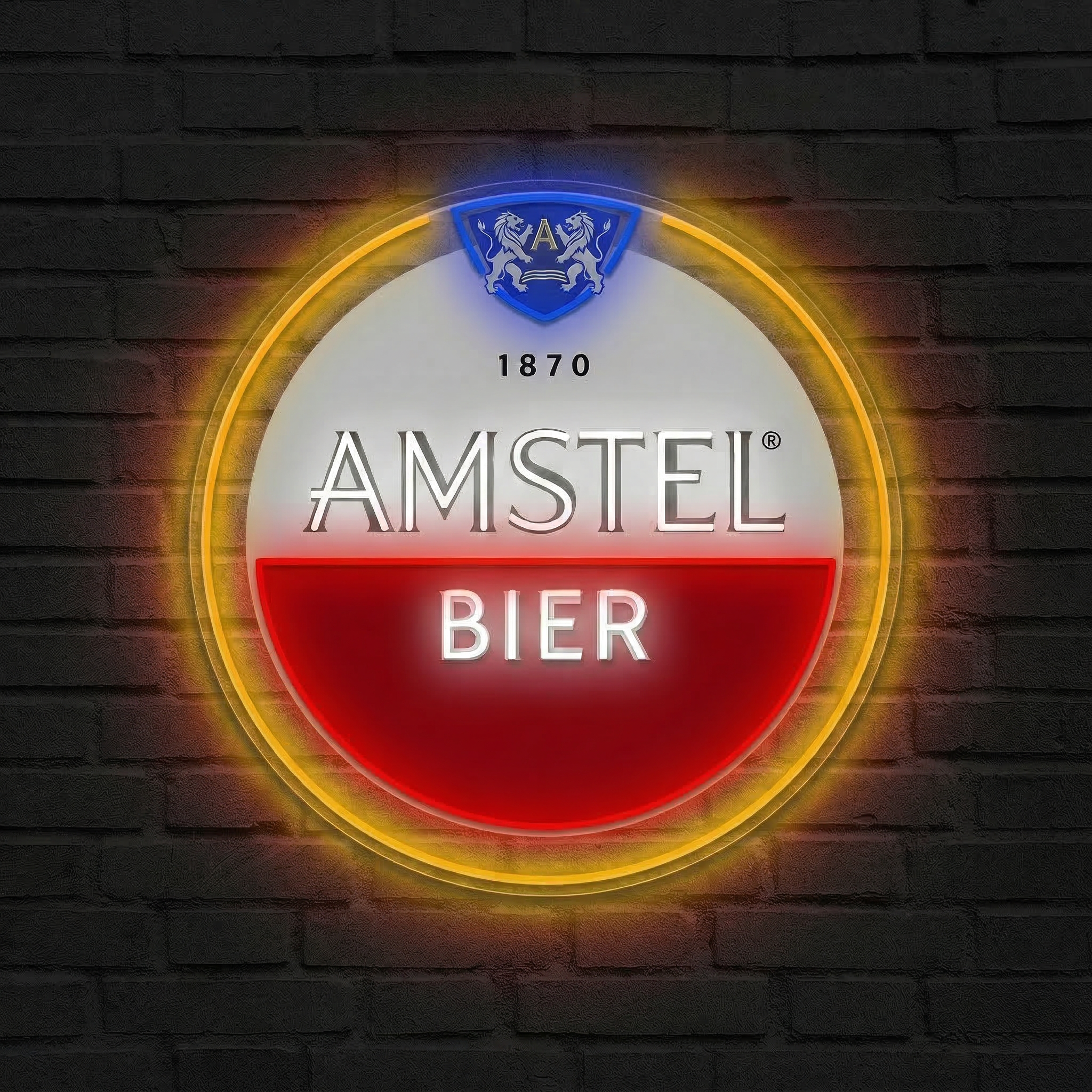 Le Néon Logo Amstel trouve naturellement sa place dans de nombreux contextes : une cave à bières personnalisée, un bar à domicile, un garage aménagé, un espace détente ou une salle de jeux. Il apporte cette touche rétro et conviviale qui invite immédiatement à la bonne humeur. C'est aussi une décoration idéale pour un restaurant, un bar ou tout espace de restauration souhaitant créer une identité visuelle forte et mémorable.
