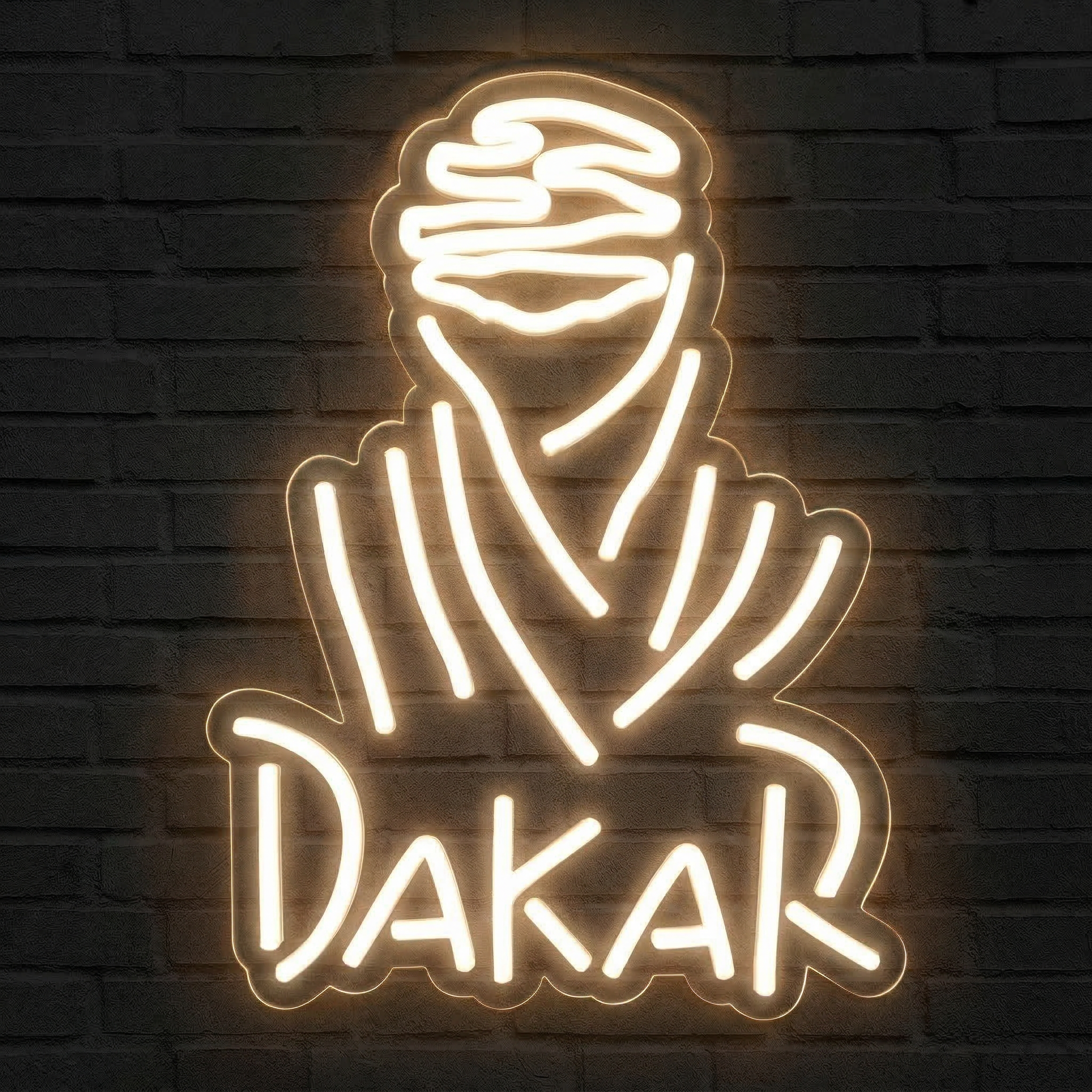 Il y a des courses qui dépassent le simple cadre sportif pour devenir de véritables mythes. Le Rallye Dakar en fait partie. Des dunes ocre du Sahara aux pistes poussiéreuses d'Amérique du Sud, cette épreuve légendaire incarne l'aventure, le dépassement de soi et la passion des sports mécaniques dans ce qu'ils ont de plus pur. Notre Néon Logo Rallye Dakar est une déclaration d'amour à cette épopée : un hommage lumineux pour ceux qui rêvent de dunes, de moteurs et de victoire au bout de l'effort.