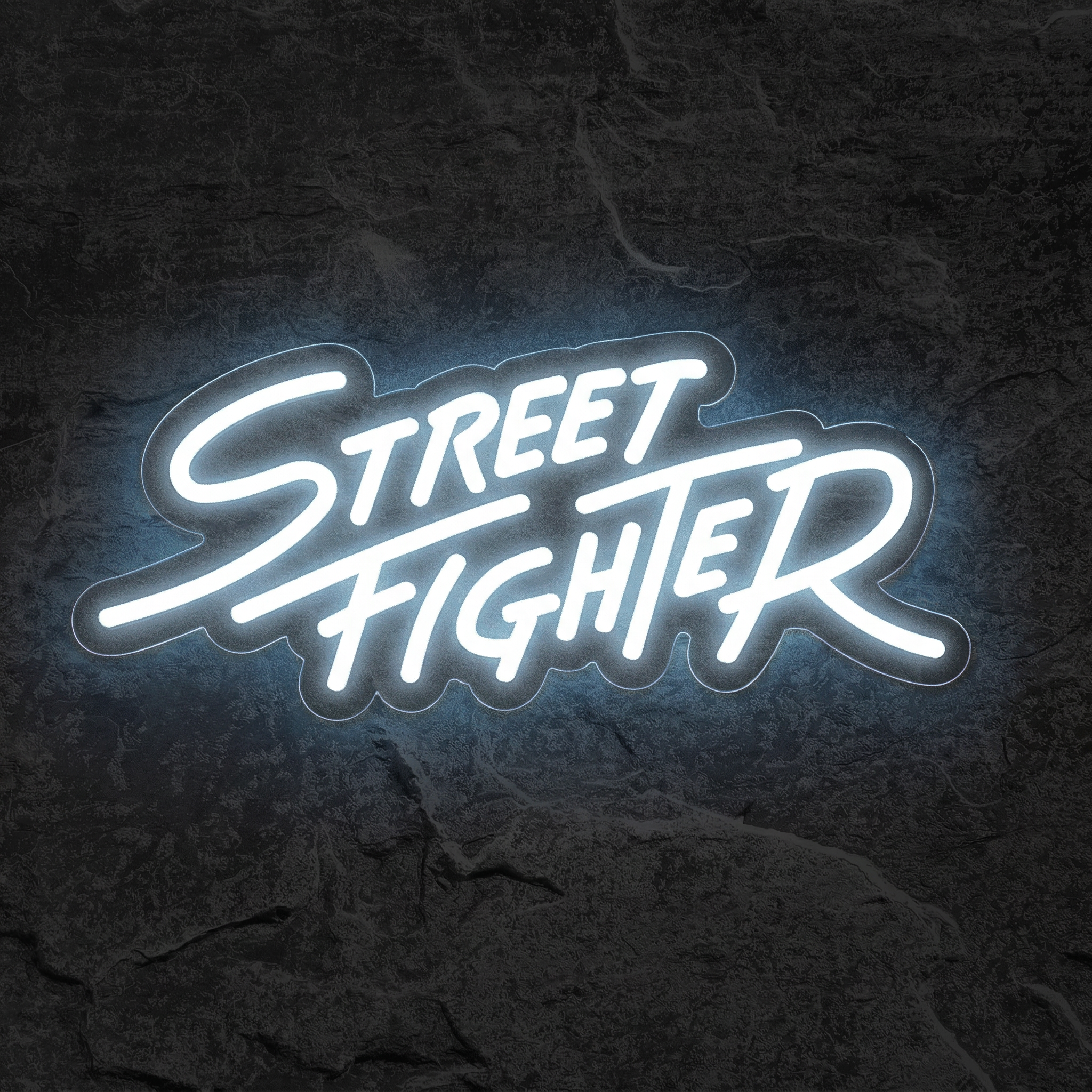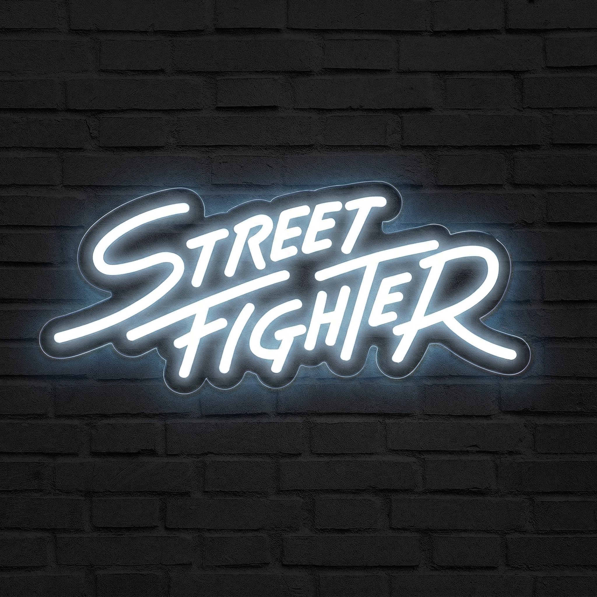 Notre Néon Logo Street Fighter reproduit avec une fidélité saisissante la typographie blanche dynamique et les formes angulaires caractéristiques qui ont fait la renommée de cette franchise mythique. Le blanc pur de nos tubes LED confère à l'ensemble une lisibilité parfaite dans toutes les conditions lumineuses — que votre pièce soit plongée dans la pénombre d'une session nocturne ou baignée par la lumière du jour. Le contraste est saisissant, l'impact visuel, immédiat.