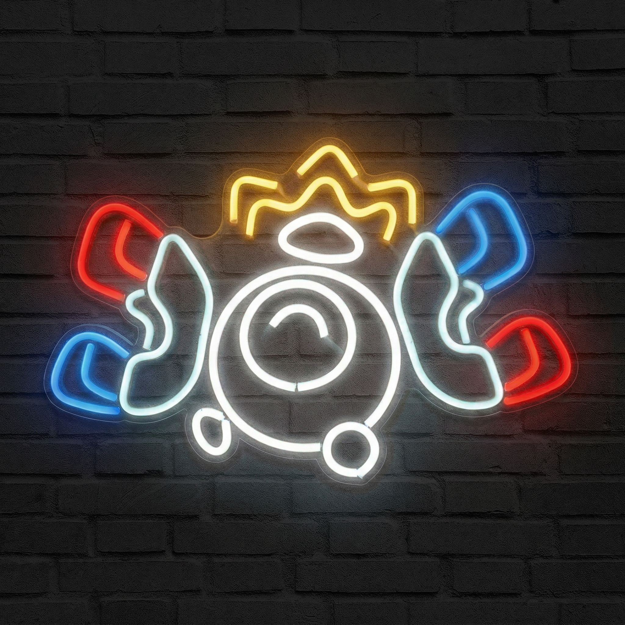 Le Néon Magnéti NeonStar reproduit fidèlement la palette emblématique du Pokémon : le corps sphérique éclairé d'un blanc lumineux, la couronne jaune vif qui trône fièrement au sommet, et les aimants bleus et rouges qui semblent véritablement flotter dans l'espace. Chaque détail a été pensé pour que la silhouette soit reconnaissable au premier coup d'œil, même de loin. Ce n'est pas un simple néon décoratif — c'est une pièce de collection lumineuse.