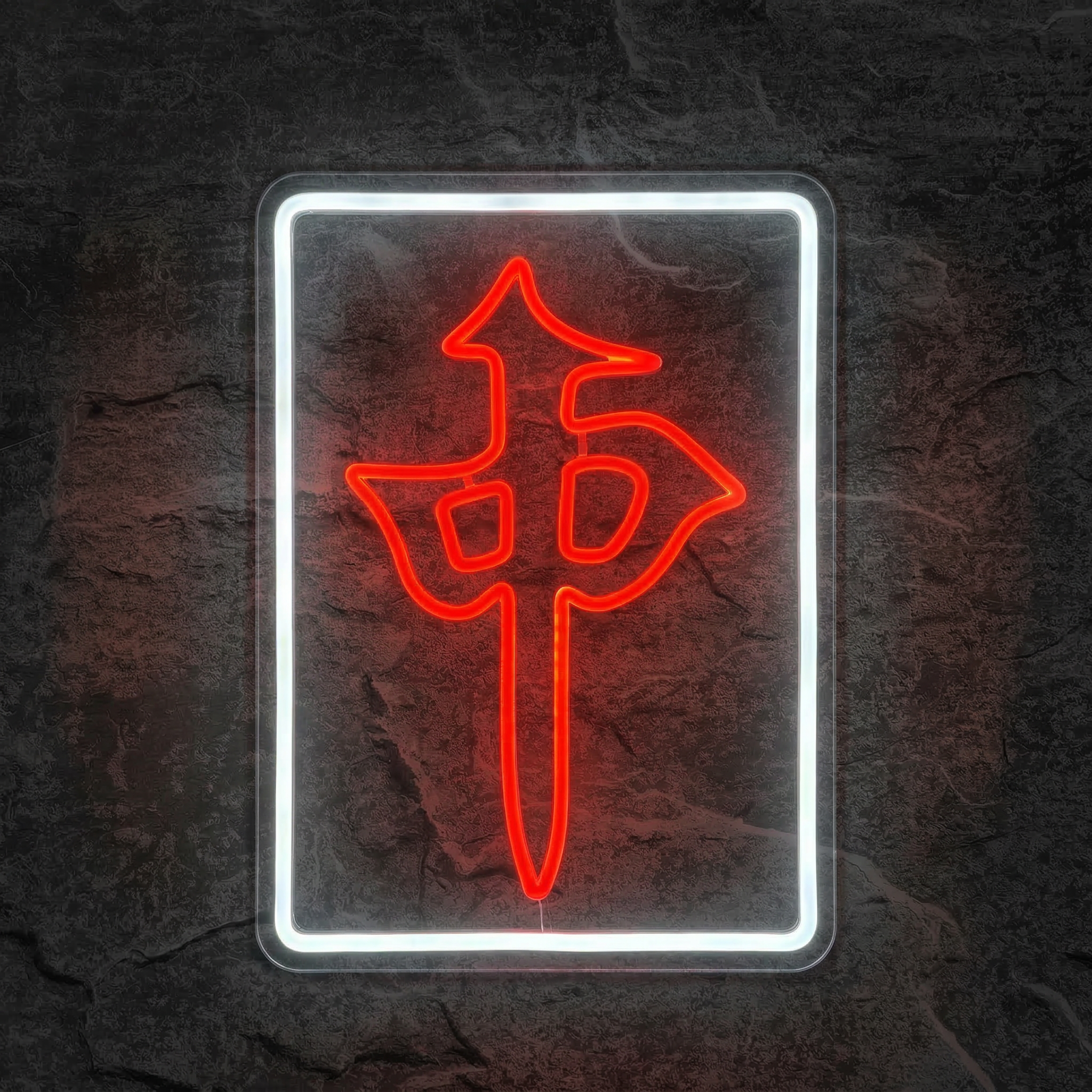 Le dragon est monté sur un fond acrylique transparent découpé au laser avec soin, ce qui lui donne cet effet flottant si caractéristique. Sur un mur sombre, l'effet est saisissant : le dragon rouge semble suspendu dans le vide, comme sorti d'une enseigne de quartier nocturne. Les trous sont pré-percés pour une installation rapide, sans outillage complexe. En quelques minutes, votre mur est transformé.
