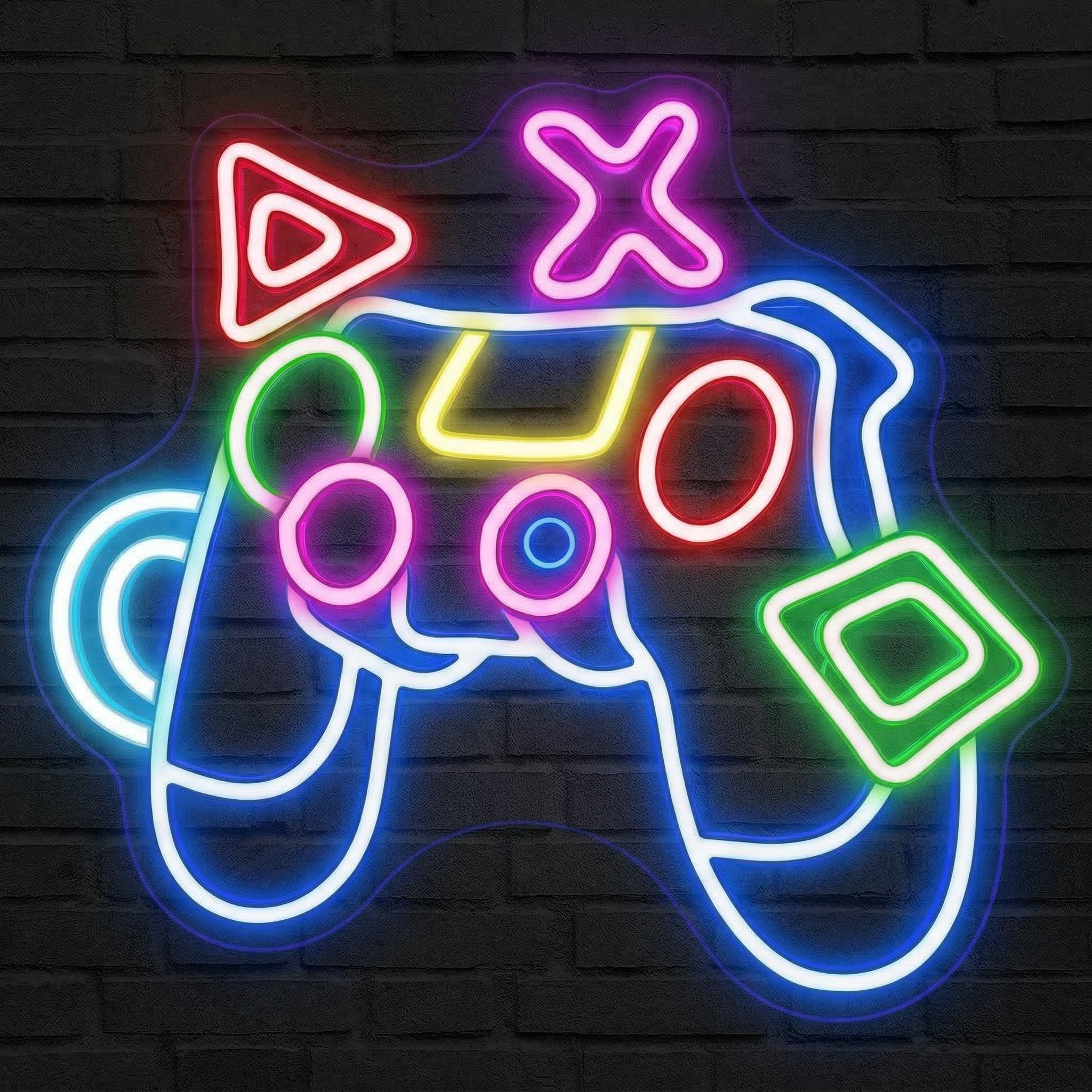 Conçu pour les passionnés de jeux vidéo, ce néon capture l'essence même de la culture console avec une précision et une finesse remarquables. Chaque symbole est reproduit avec soin, dans des teintes vives et distinctes qui restent fidèles à l'iconographie que des millions de joueurs reconnaissent au premier coup d'œil. L'éclairage est intense sans jamais être agressif — parfait pour les longues sessions, même dans une pièce plongée dans la pénombre.