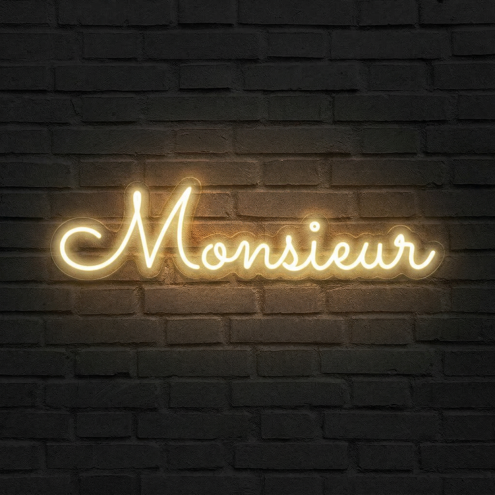 Le néon Monsieur en blanc chaud : une touche d'élégance lumineuse pour votre intérieur, votre mariage ou votre commerce. Style raffiné, éclat garanti.