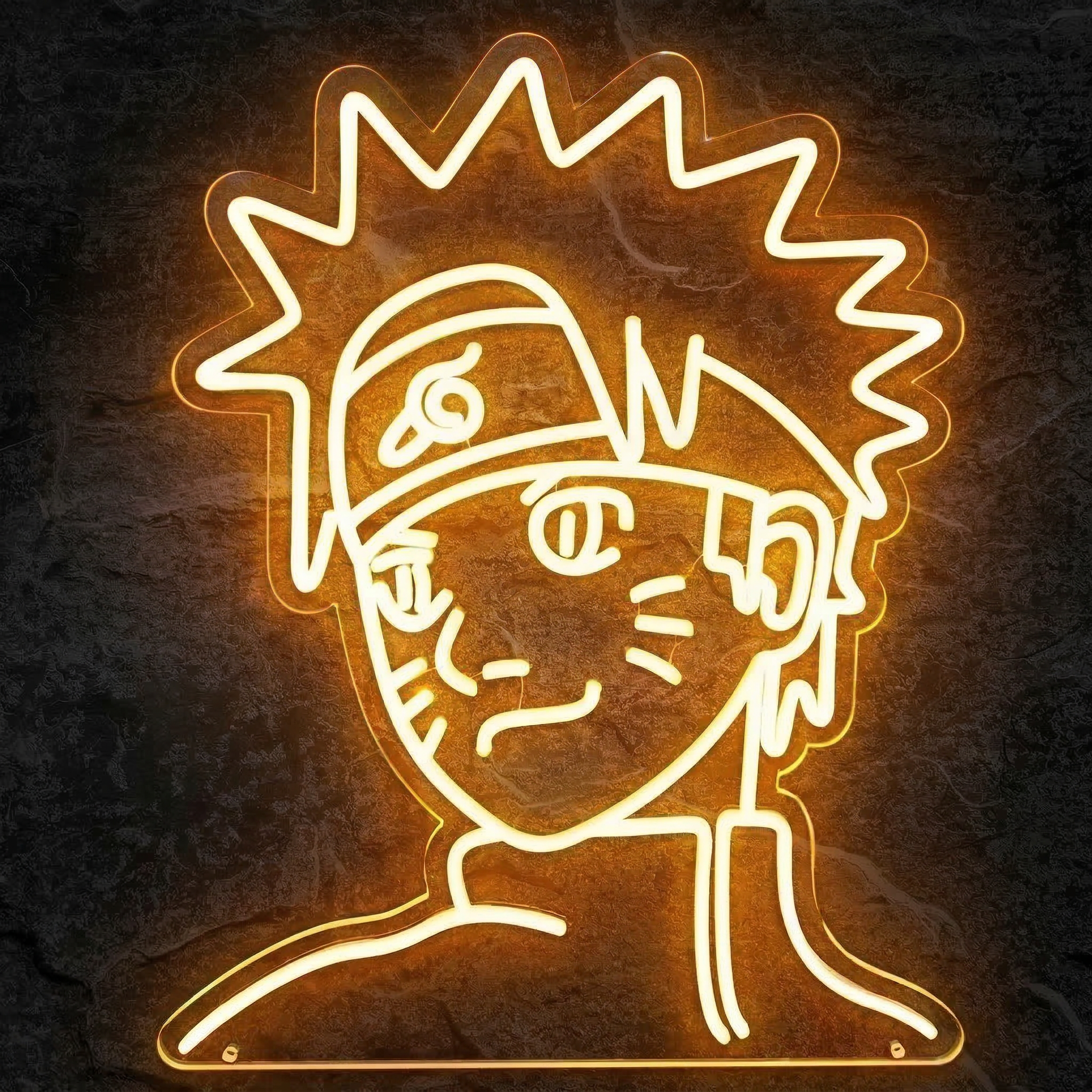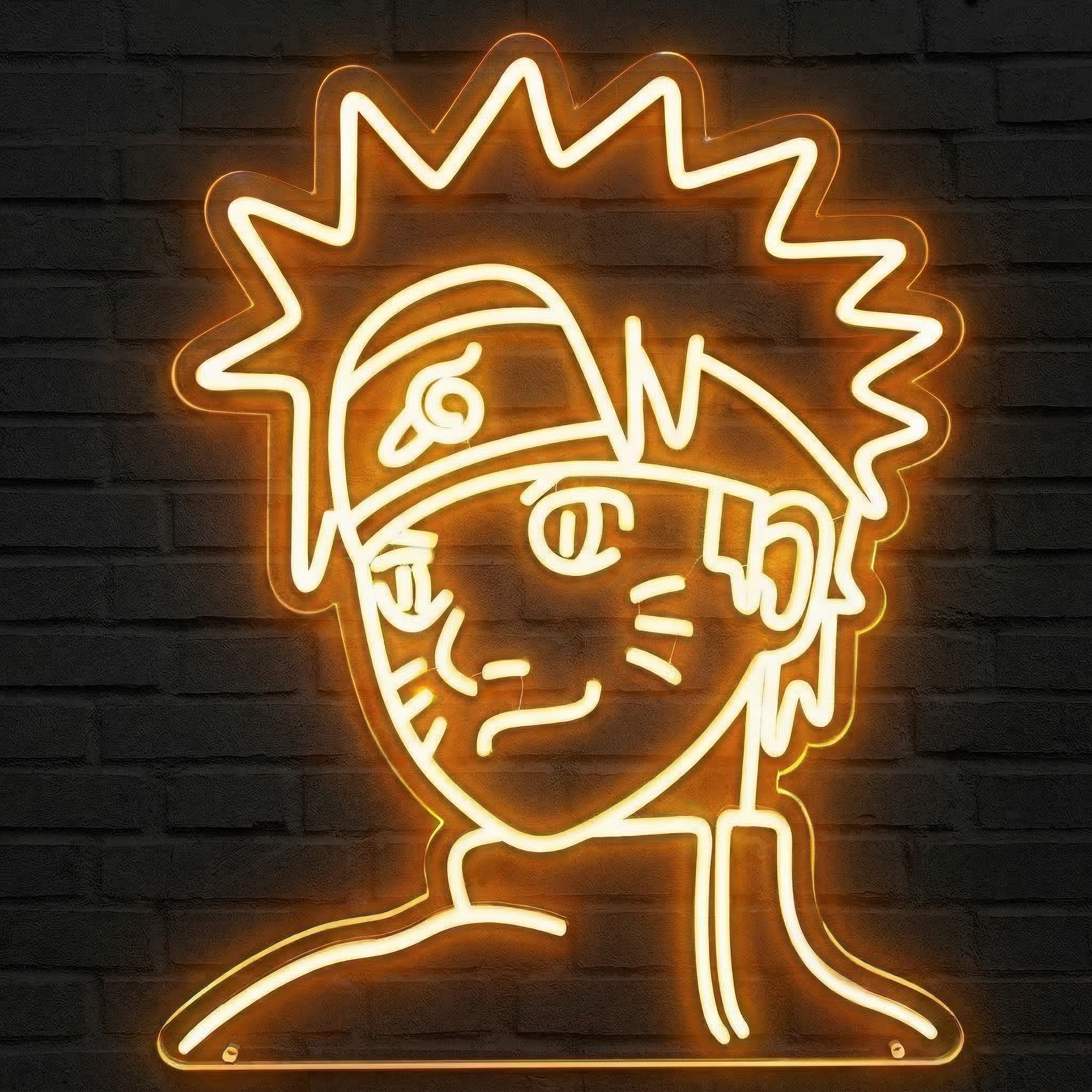Le design de ce néon est pensé pour l'impact visuel. Les courbes caractéristiques du visage de Naruto — cheveux explosifs, bandeau frontal, marques sur les joues — sont reproduites avec une fidélité saisissante grâce à nos tubes LED flexibles de haute qualité. Sur fond sombre, l'effet est immédiat : le personnage semble littéralement prendre vie sur votre mur, comme sorti directement d'une case du manga ou d'un épisode de l'anime.