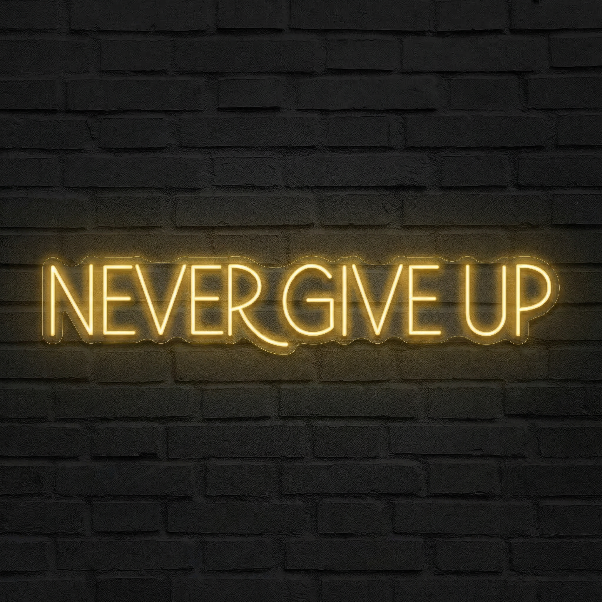 Certaines phrases ont le pouvoir de changer une journée. « Never Give Up » en fait partie. Ce néon LED blanc chaud transforme ces trois mots en une présence lumineuse, constante et inspirante — une œuvre murale qui vous rappelle, chaque matin, pourquoi vous continuez à avancer. Chez NeonStar, nous avons voulu faire de cette devise bien plus qu'un simple slogan : un véritable objet de décoration haut de gamme, à la fois puissant et élégant.