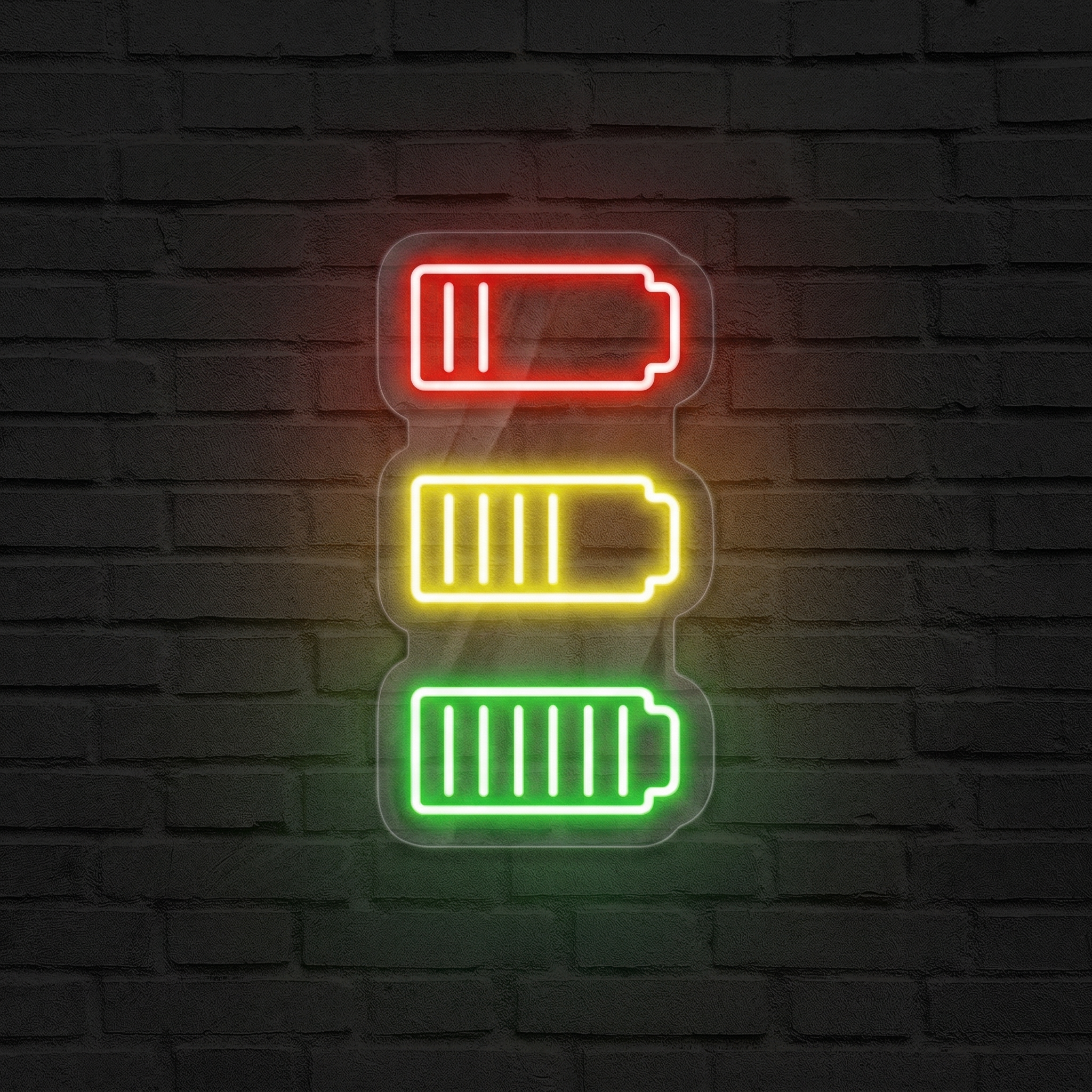Fabriqué avec des tubes LED flexibles de haute qualité montés sur un fond acrylique transparent découpé au laser, le Néon Niveau De Batterie NeonStar reproduit à la perfection l'esthétique des grandes enseignes lumineuses tout en étant 100 % sûr et silencieux. Contrairement aux néons à gaz traditionnels, il ne chauffe pas, ne vibre pas, ne grésille pas. Il éclaire simplement, avec élégance et efficacité — comme une batterie au max de sa forme.