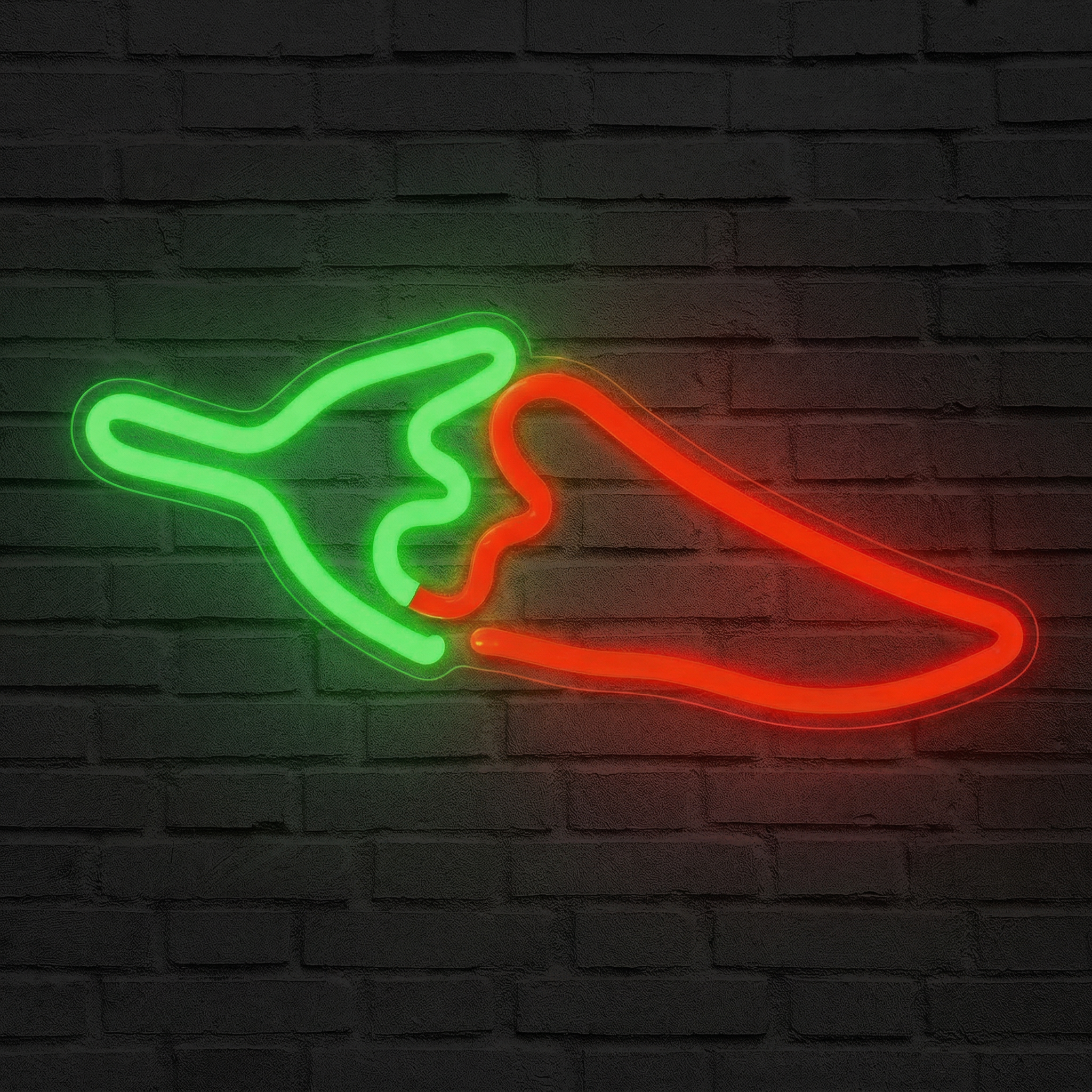 Fabriqué avec des tubes LED flexibles de haute qualité montés sur un fond acrylique transparent découpé au laser, le Néon Piment Chili reproduit avec précision les courbes organiques du piment. Le résultat est saisissant : la forme semble flotter sur le mur, baignant l'espace d'une lumière chaude et vibrante. Contrairement aux enseignes au néon à gaz d'antan, notre néon LED ne chauffe pas, ne grésille pas et ne consomme qu'une fraction de l'énergie. Silencieux, sûr, économique — et pourtant bien plus impressionnant.