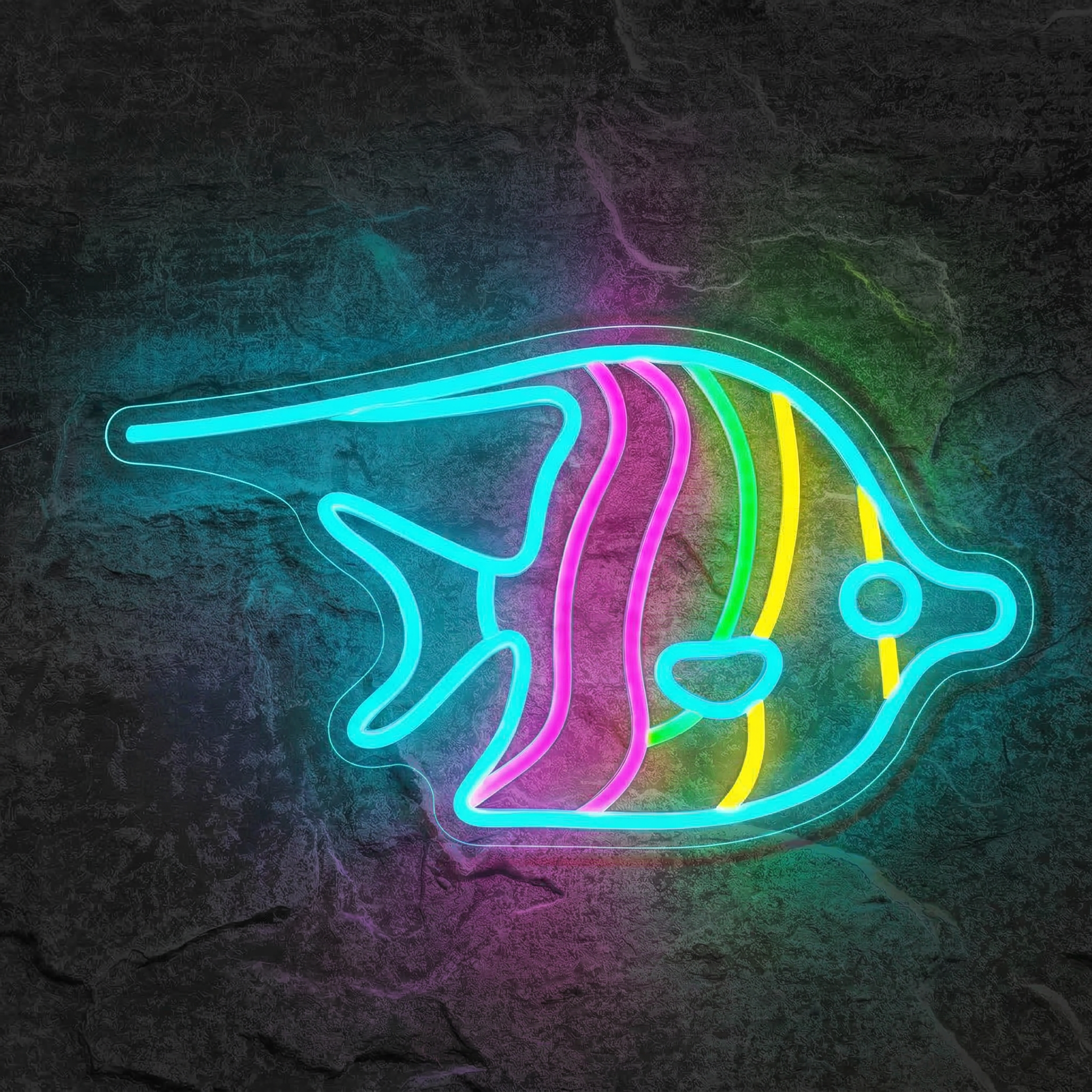 Illuminez votre intérieur avec ce néon poisson tropical aux couleurs éclatantes — bleu turquoise, rose, vert et jaune — signé NeonStar.