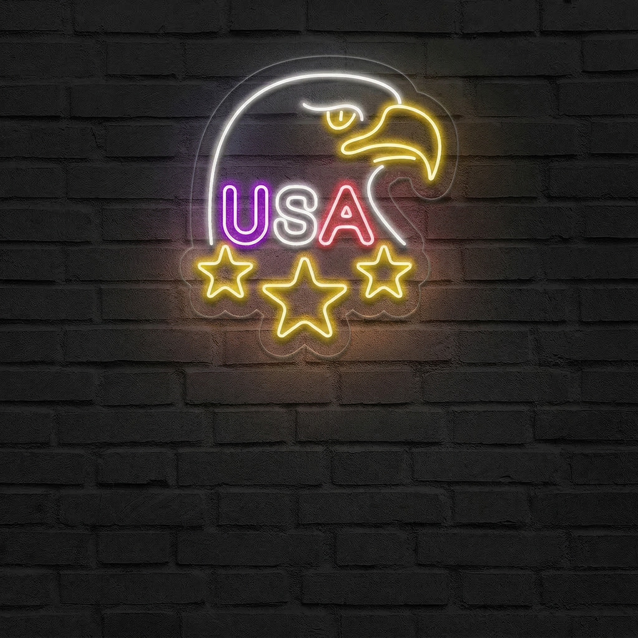 Que vous soyez passionné de culture américaine, amateur de nature sauvage, collectionneur de pièces déco iconiques ou simplement à la recherche d'un néon qui en impose, ce modèle est fait pour vous. Il s'intègre aussi bien dans un salon audacieux, un bureau inspirant, un bar à l'ambiance affirmée ou un espace gaming qui veut sortir du lot. La silhouette du pygargue, détaillée et reconnaissable, crée un effet saisissant dès que la lumière s'allume.