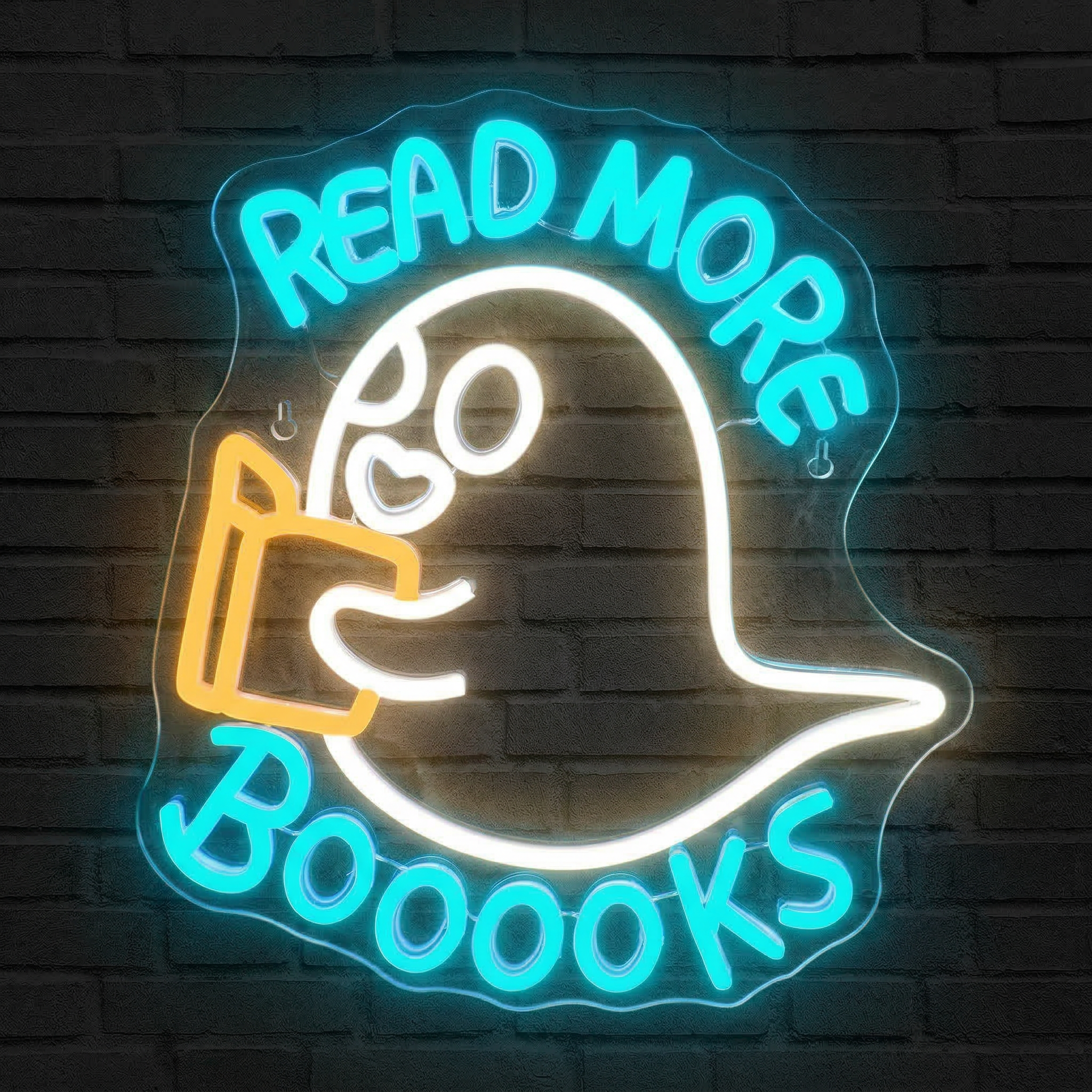 Un néon fantôme kawaii entouré du message 'Read More Books' — la déco parfaite pour les amoureux des livres qui veulent illuminer leur univers littéraire.