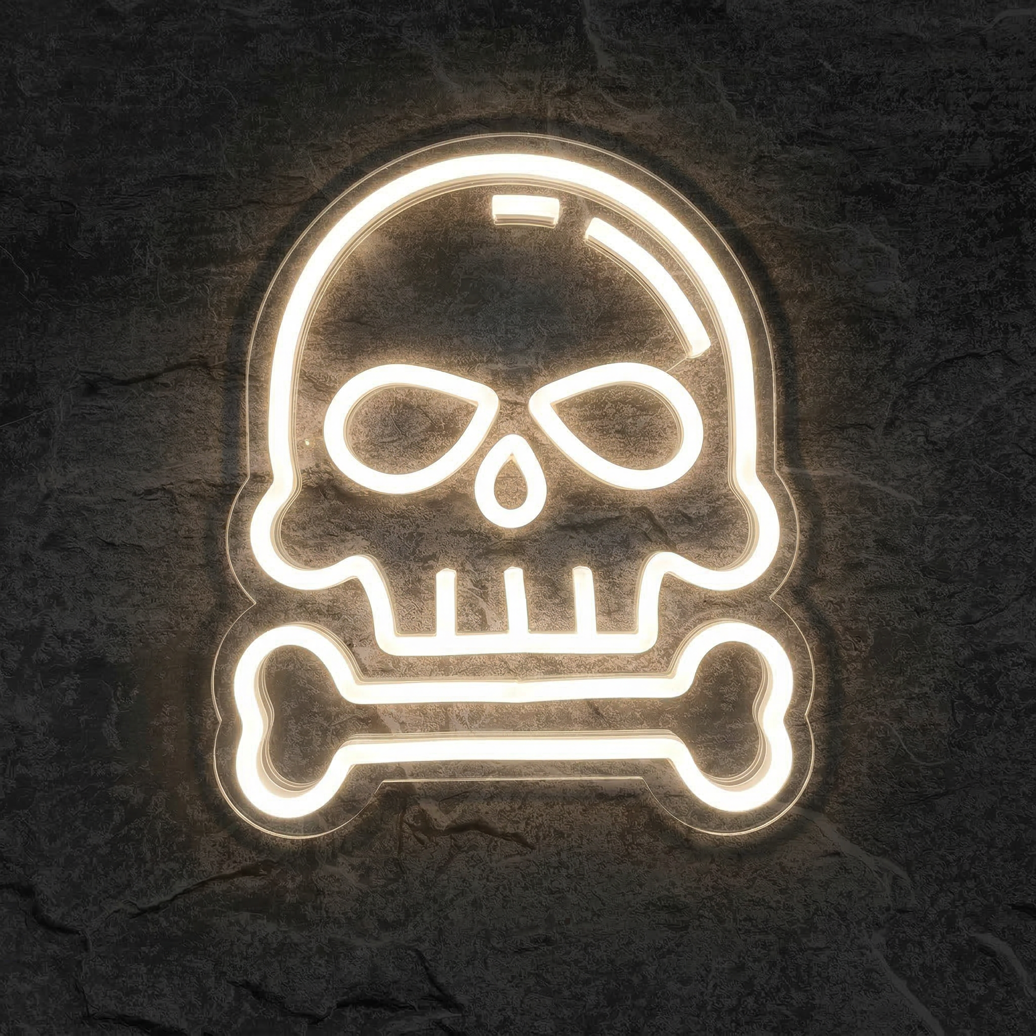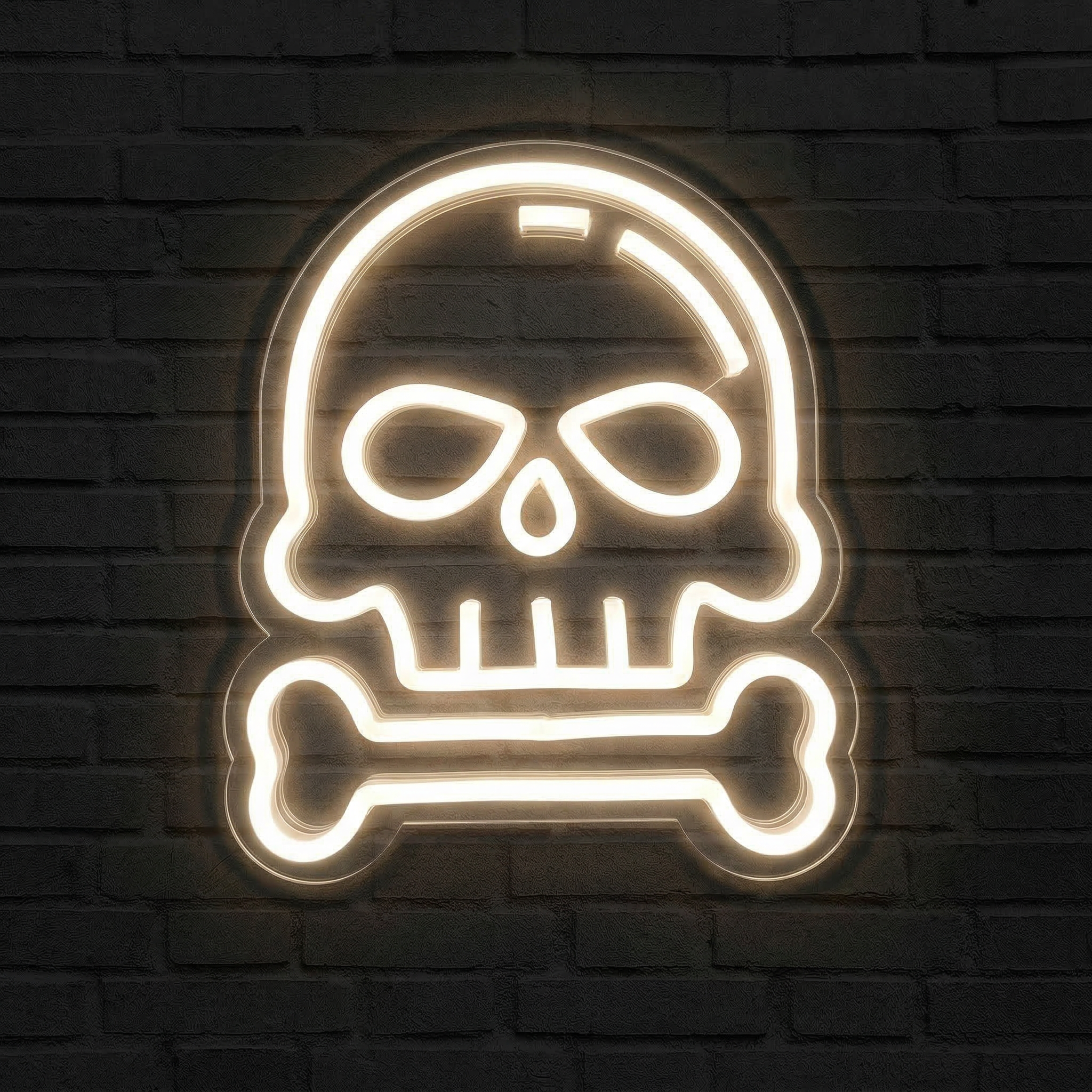 Il y a des symboles qui traversent les âges sans jamais perdre leur pouvoir. La tête de mort en fait partie. Emblème de rébellion, d'attitude et de style depuis des siècles, le crâne et les os croisés s'imposent aujourd'hui comme l'un des motifs les plus forts de la culture streetwear, du rock, du gaming et de l'esthétique urbaine. Notre Néon Skull and Bones transforme ce symbole légendaire en une œuvre lumineuse spectaculaire, prête à marquer les esprits dans n'importe quel espace.