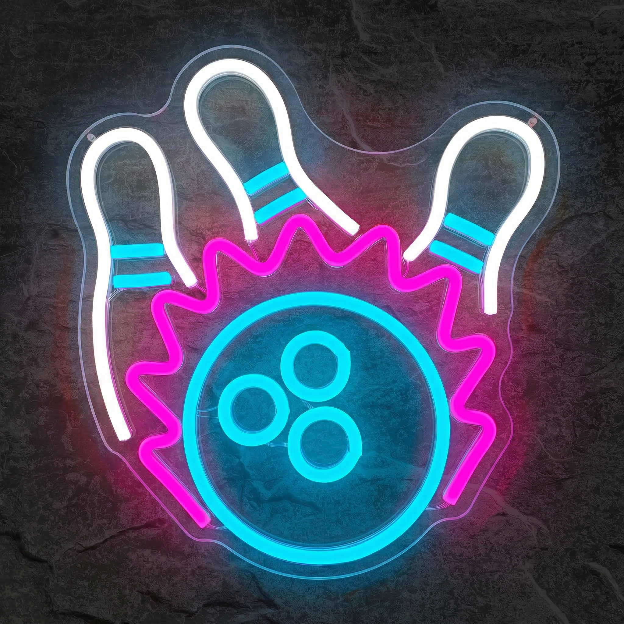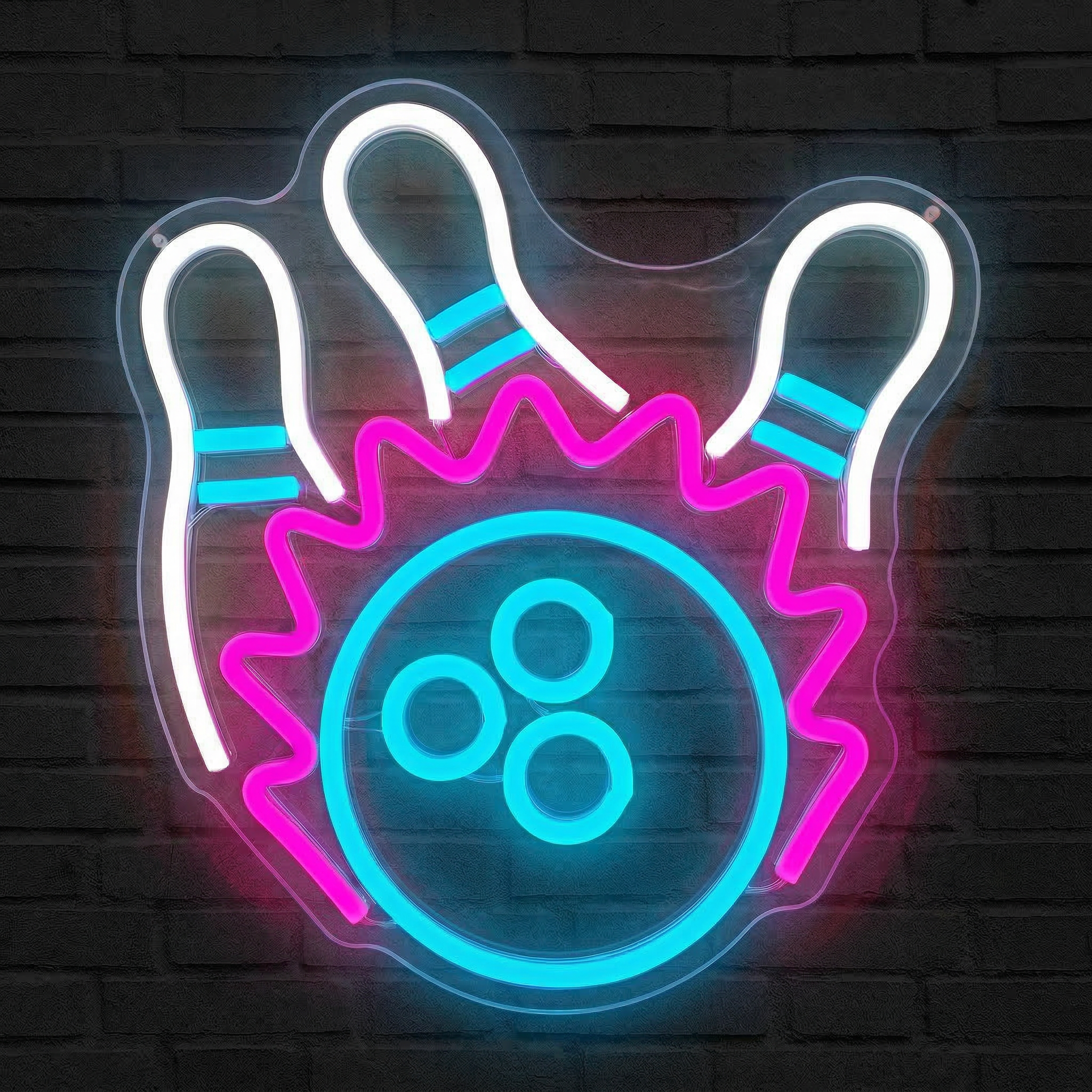 Chez NeonStar, nous avons conçu ce néon pour capturer l'énergie unique du bowling — la concentration avant le lancer, l'euphorie du strike, l'ambiance rétro des salles mythiques. Le motif, soigneusement travaillé, évoque les quilles et la boule avec un style graphique moderne qui traverse les tendances déco sans jamais vieillir. C'est à la fois nostalgique et résolument contemporain.