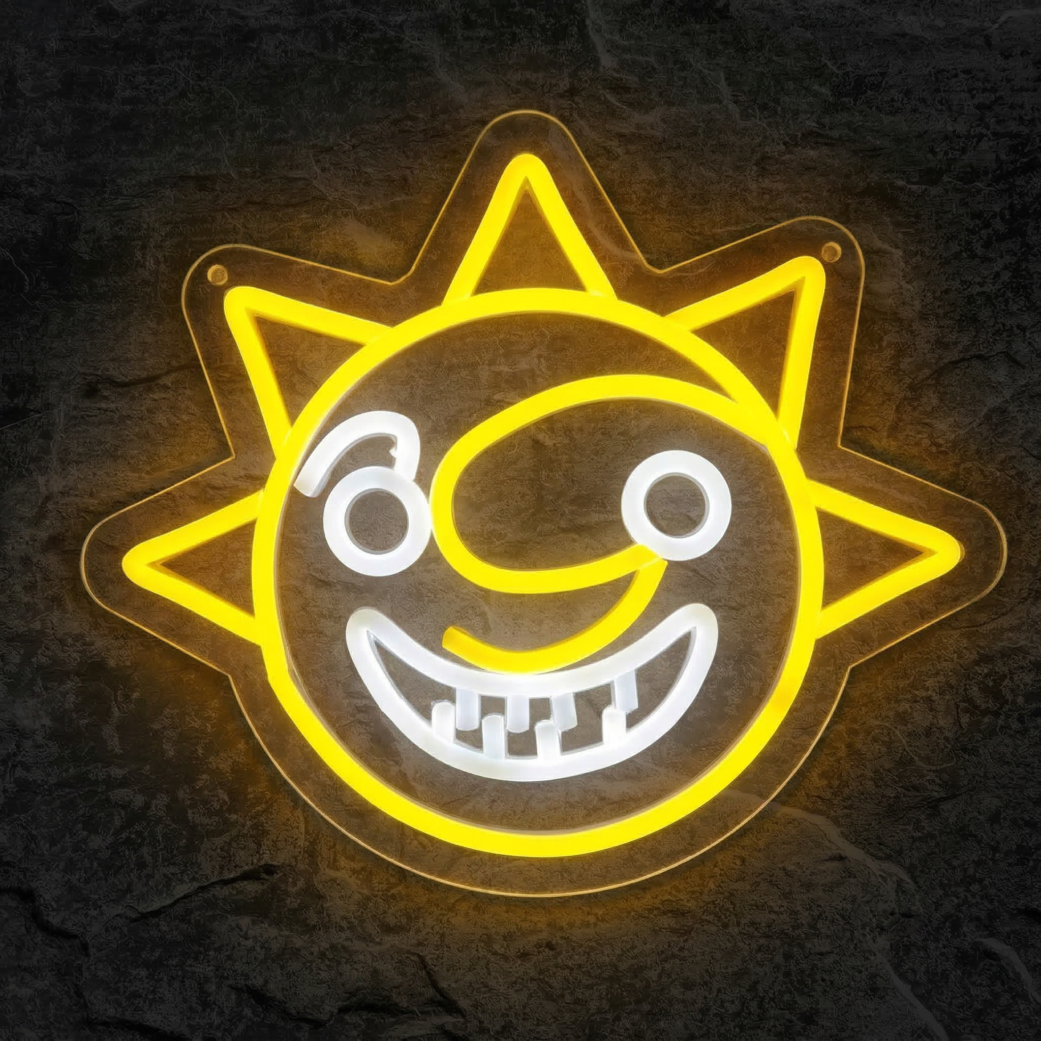 Il sourit. Il vous regarde. Et cette fois, il illumine votre chambre avec style. Le Néon Sundrop de NeonStar est bien plus qu'une simple décoration — c'est un hommage lumineux à l'un des personnages les plus cultes et les plus inquiétants de la saga Five Nights at Freddy's. Avec ses rayons jaunes vifs et son expression à la fois joyeuse et troublante, ce néon capture avec une précision saisissante l'essence du Daycare Attendant qui a hanté des millions de joueurs à travers le monde.