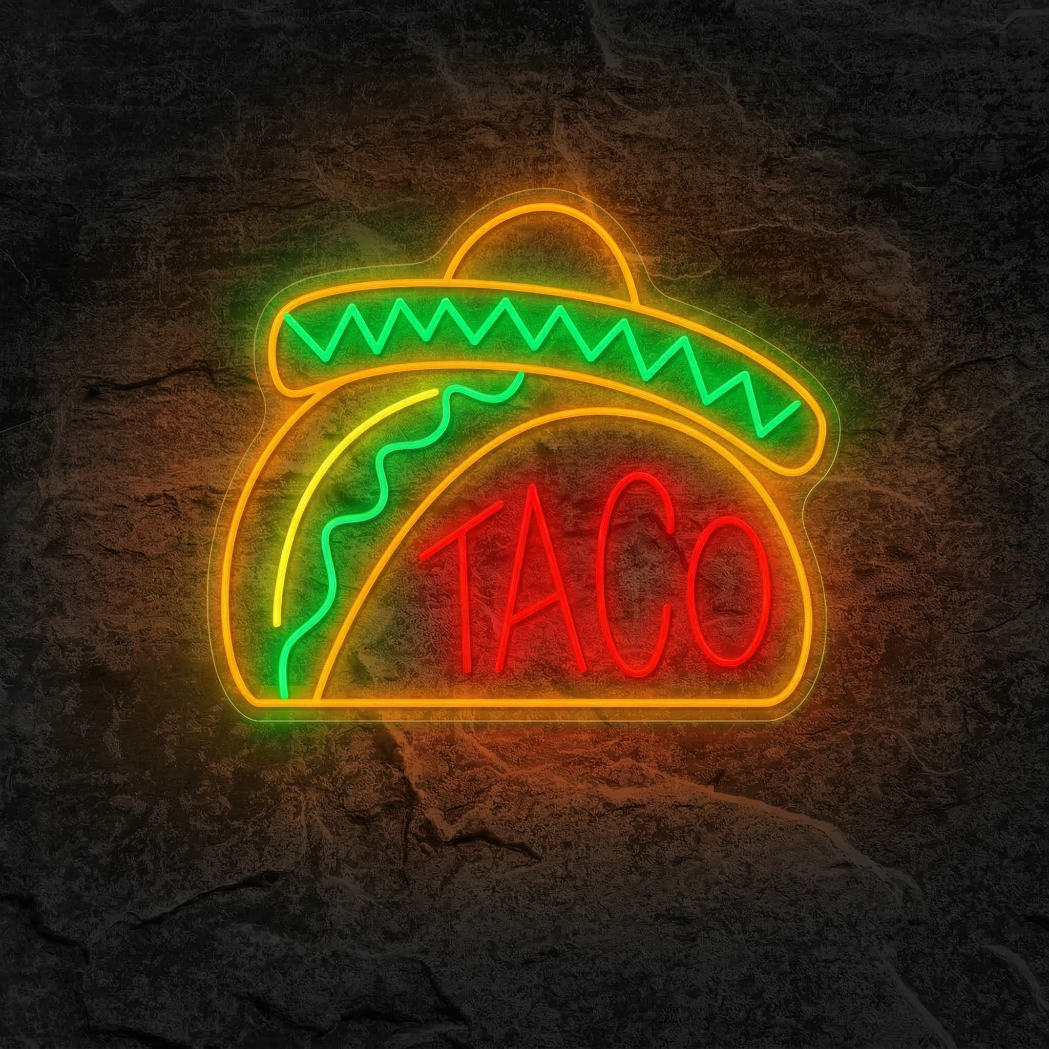 Plongez dans l'ambiance festive du Mexique avec ce néon taco chapeau mexicain signé NeonStar — la touche colorée et décalée qu'il manquait à votre déco.