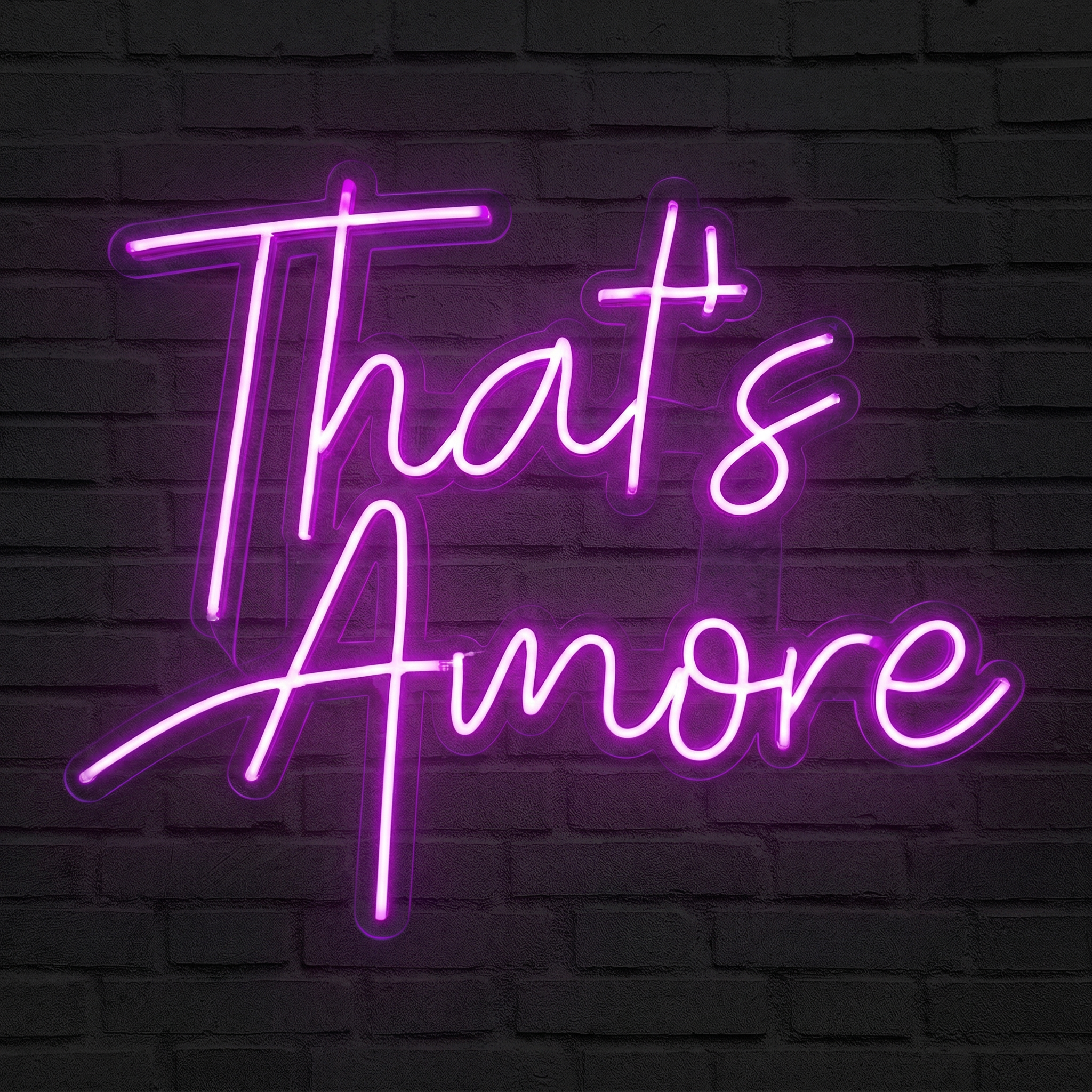 Inspirée des grandes enseignes de restaurants et de trattorias italiennes qui illuminent les ruelles de Rome ou de Naples depuis des décennies, cette typographie cursive évoque à la fois la nostalgie vintage et le style contemporain. Suspendu dans un salon, une cuisine ouverte, un couloir ou une chambre à coucher, le Néon That's Amore crée immédiatement une ambiance chaleureuse et enveloppante. Il raconte une histoire dès que vous entrez dans la pièce — et cette histoire, c'est celle de l'amour.